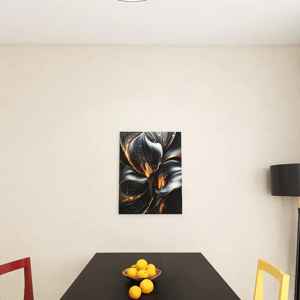 1.5 inch thick pine frame canvas art - black and gold metal calla lily design,modern wall trim, suitable for interior decoration