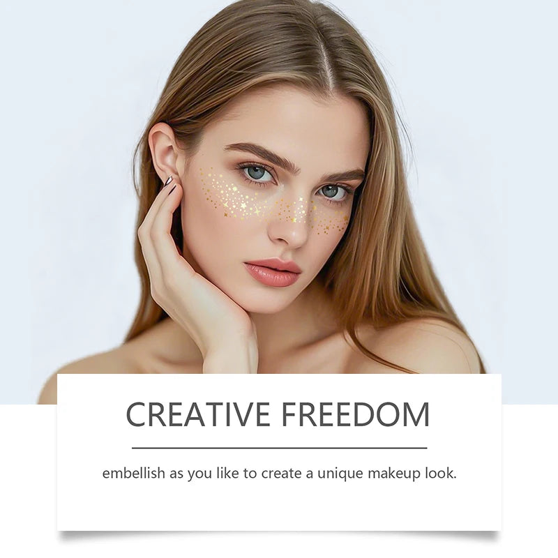 Sparkle Gold Glitter Freckles provide a delicate, shimmering accent to your complexion, enhancing your natural features with a radiant glow. Designed for precise and easy application, these glitter freckles offer long-lasting wear suitable for special occasions or everyday elegance. Perfect for adding a professional, luminous touch to your makeup routine.