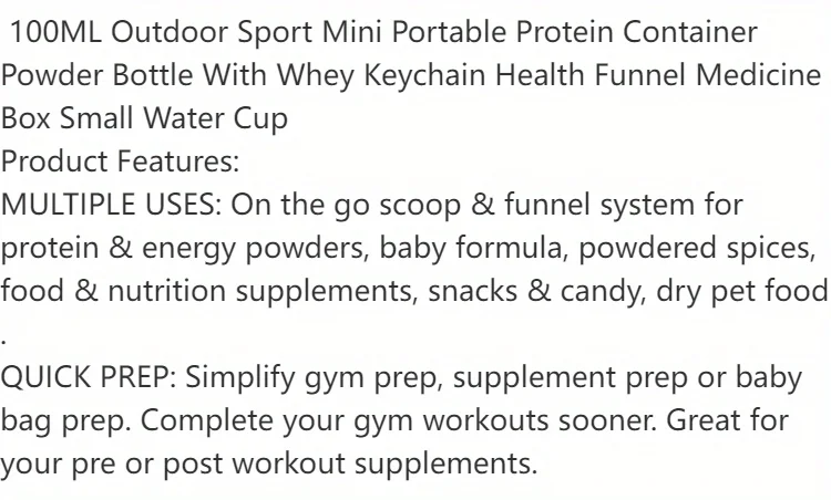 100ML Outdoor Protein Powder Container With Whey Keychain