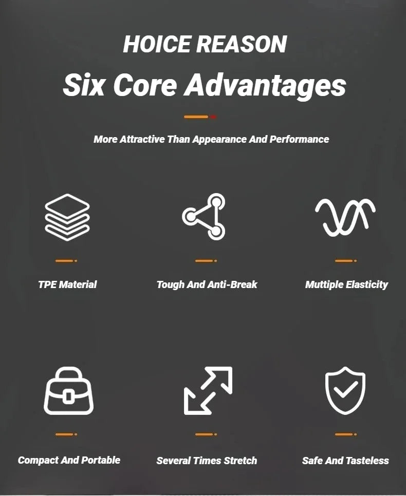 TPE Material/Tough And Anti-Break/Muttiple Elasticity/Compact And Portable/Several Times Stretch/Safe And Tasteless