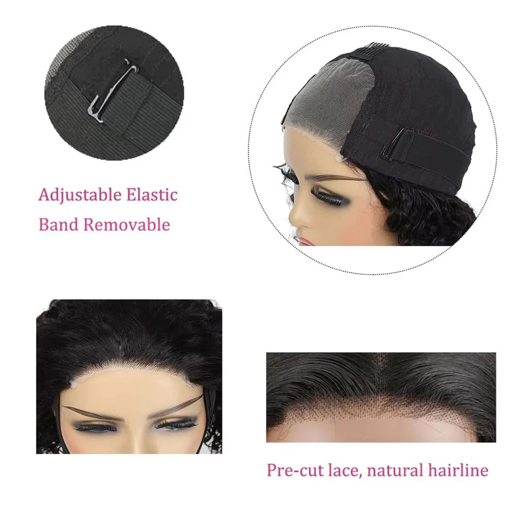 Experience effortless style with this 14-inch body wave glueless human hair wig. Designed for convenience, the 5x4 pre-cut lace offers a natural hairline and easy application without glue. Its loose wave texture adds volume and movement, perfect for a chic bob look. Ready to wear, this wig provides a comfortable fit and versatile styling options, ideal for women seeking a quick, polished appearance with premium quality human hair.