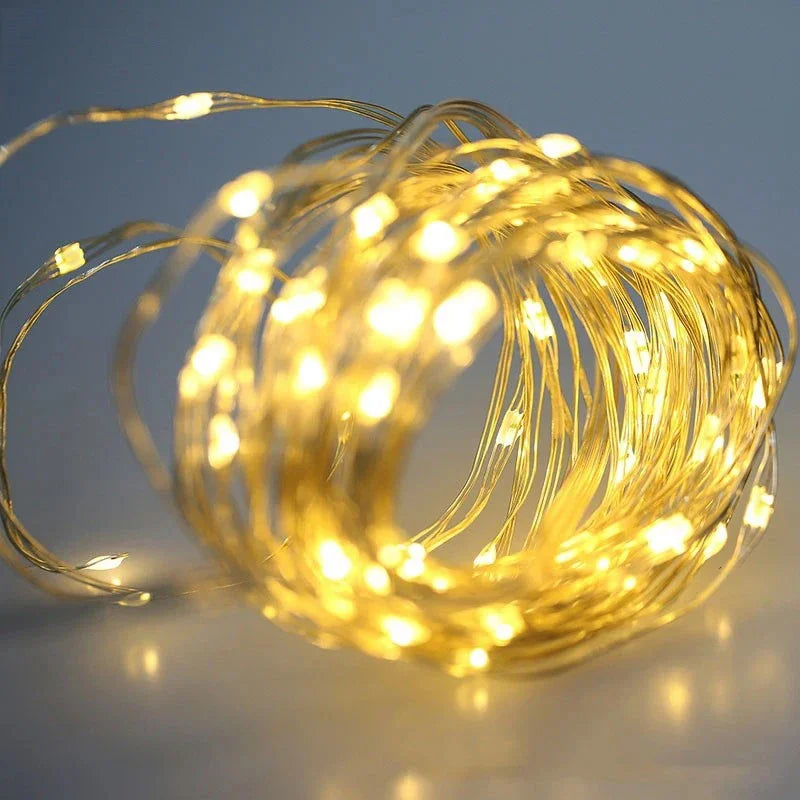 2/5/10M LED Copper Wire Light String Fairy Garland Battery Powered Garden Bedroom Party Wedding Christmas New Year Ornament