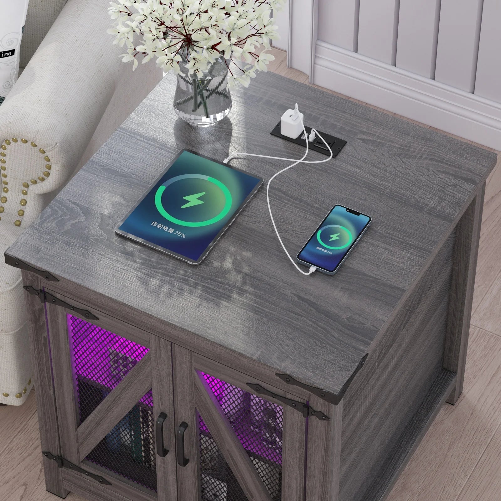 【Side Table with Charging Station】This bed side table with charging station, which has 2 power outlets and 2 USB ports, allows you to charge up to 4 devices simultaneously. Product Measured: 24" W x 24" D x 24"H.