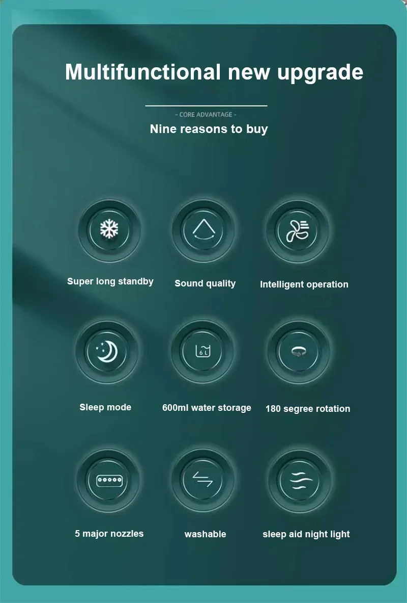 *7 Colors & Low Noise: This portable air cooler fan features a 7-color light design that provides soft lighting. Turn on* 3-in-1 function: includes functions of fan, air conditioner and air humidifier. If you feel the air is dry and hot, buy it. It is not only a personal air conditioner but also an air humidifier. In hot summer, when you add ice cubes and water to the sink, you will feel the cool air and enjoy the cool summer. At the same time, it can also humidify the air in autumn and winter.*3 Wind and 3 Spray: The air cooler fan has 3 wind speed modes (low/medium/high) and 3 spray modes, you can adjust the wind speed and spray mode according to the occasion. It is a combination of personal air conditioning cooler, fan, and air humidifier, with a three-in-one multi-functional design, allowing you to stay away from the hot summer and enjoy a cool summer. 7 colorful lights create a romantic atmosphere on the dining table or coffee table on hot summer nights! Put it in the bedroom and accompany you into the beautiful night. This air cooler works powerfully and makes low noise, allowing you to sleep comfortably throughout the night in a quiet environment.* Power Mode and Energy Saving: Simply connect the USB cable to your USB port-enabled device. Compatible with computers, mobile power supplies, USB adapters, car chargers and other power supplies that support USB. Low energy consumption, more environmentally friendly and energy-saving. It saves money on your electricity bill and is environmentally friendly.* Portable Design and Large Capacity: The portable design air cooler fan can be easily carried anywhere. In summer, this is the best choice for camping, you can camp easily, perfect for home, office, outdoor picnic, etc. The 600ML large water tank is filled with ice cubes and water, which can spray cold air for hours to keep you cool. Cools your body and makes you happy.