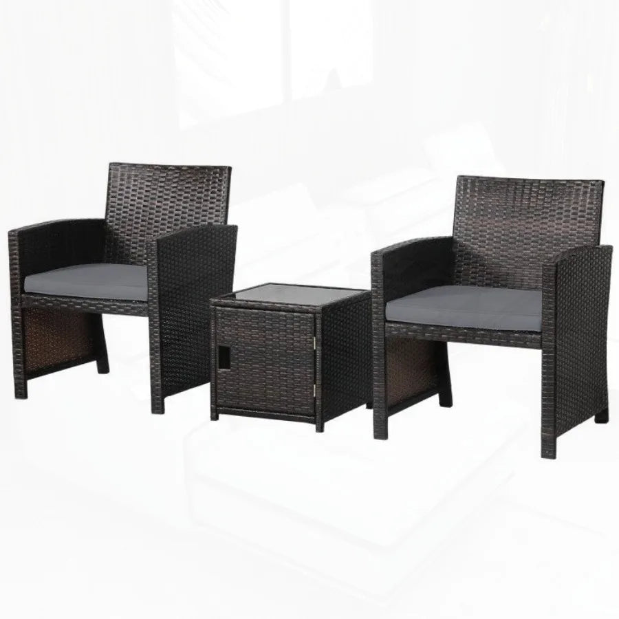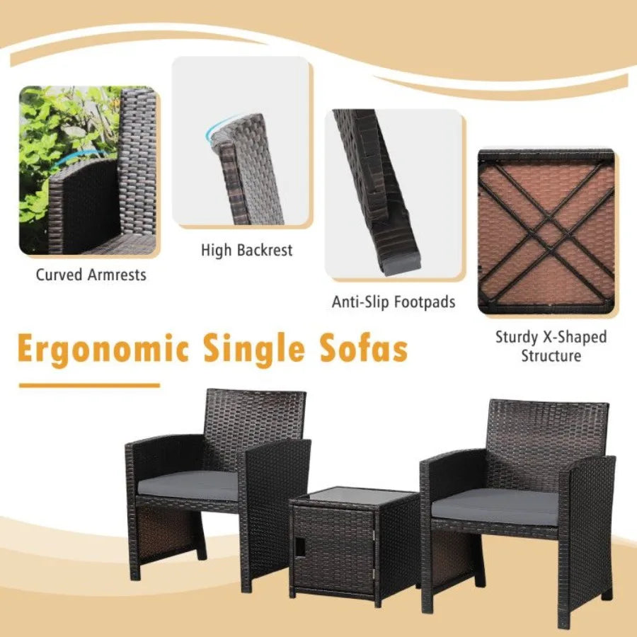 3 Pieces Patio Wicker Furniture Set with Storage Table and Protective Cover