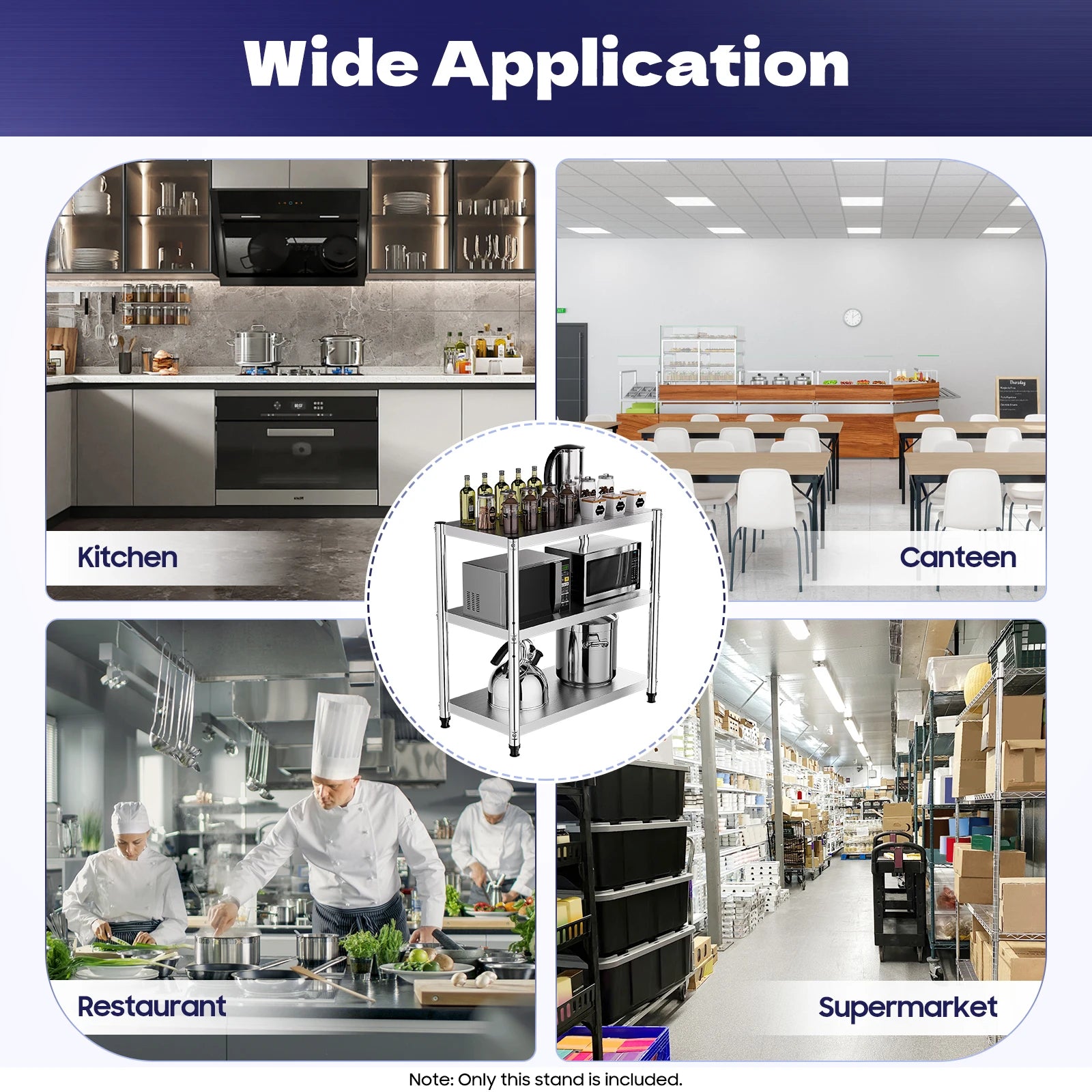 3-Tier Stainless Steel Work Table Kitchen Storage Prep Table Multifunctional Food Prep Worktable