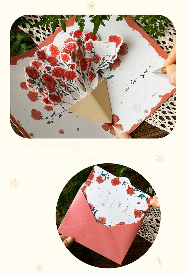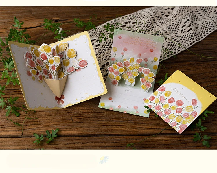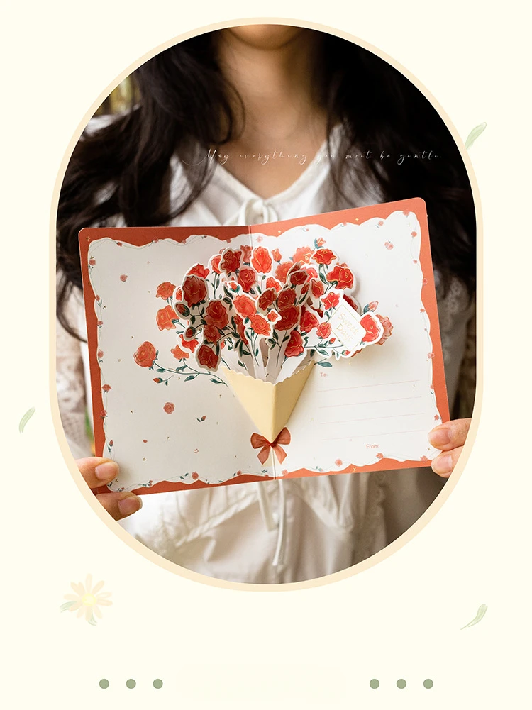 3D pop-up style creative minimalist greeting card original flower blessing card happy birthday party invitation letter gift