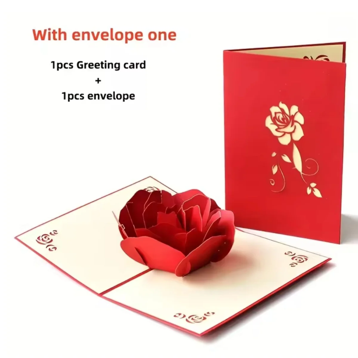 3D Rose Pop Up Card, Valentines day card, Mothers day Birthday card, anniversaries Weddings Flower Greeting Card With Envelope