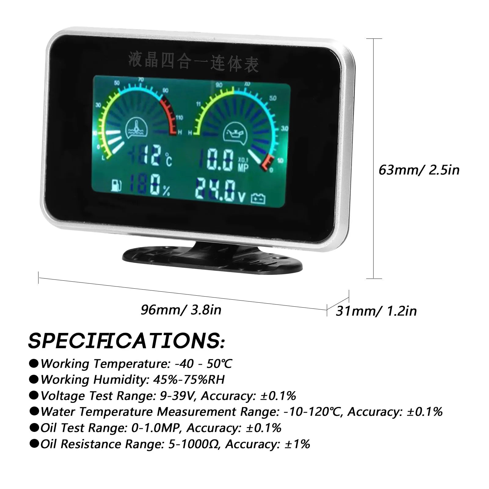 4-in-1 Car LCD Meter Digital Oil Pressure Voltage Water Temperature Fuel Gauge Universal Instrument 9-36V for Car Truck SUV RV