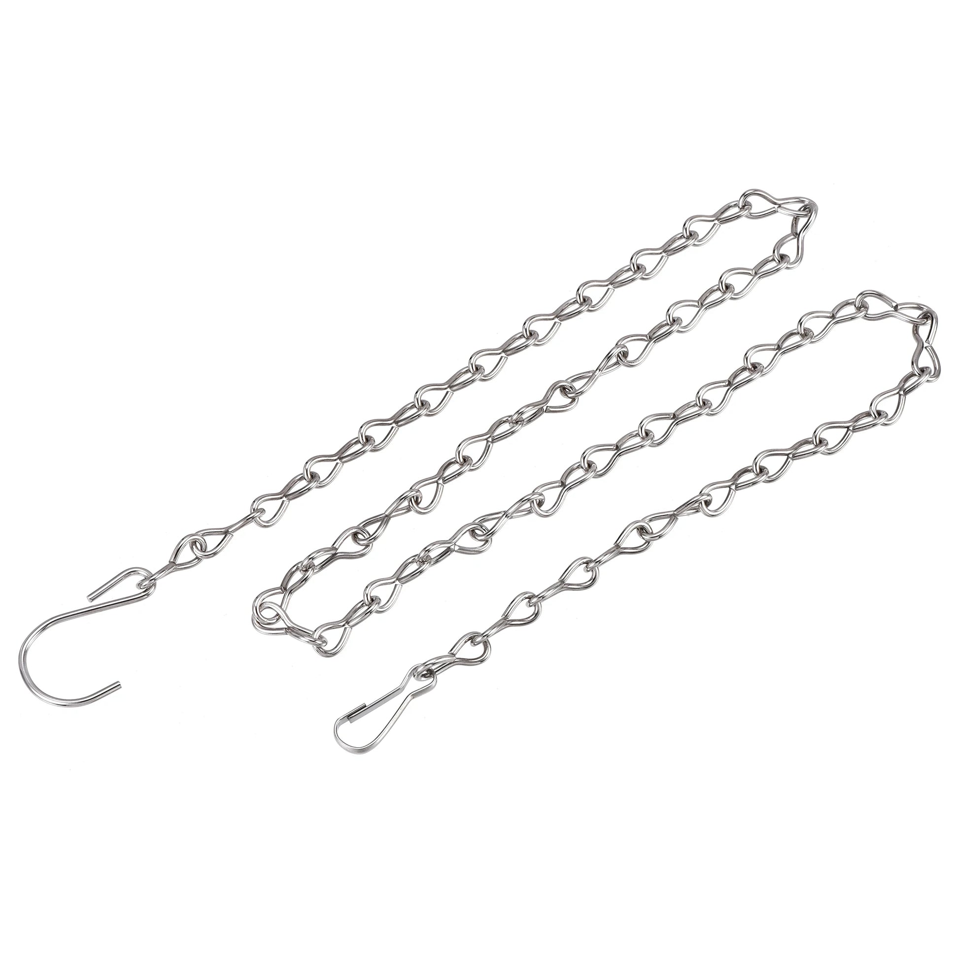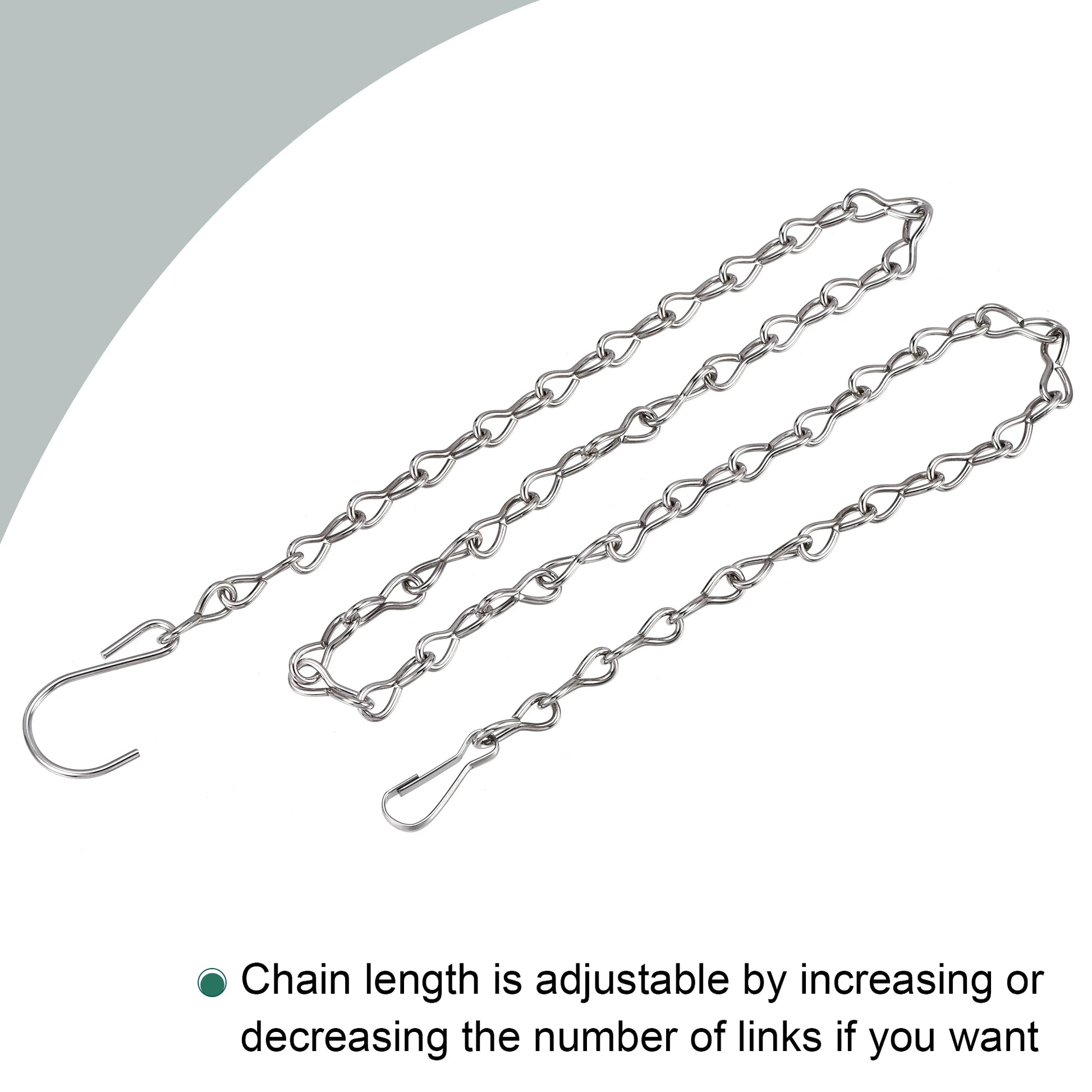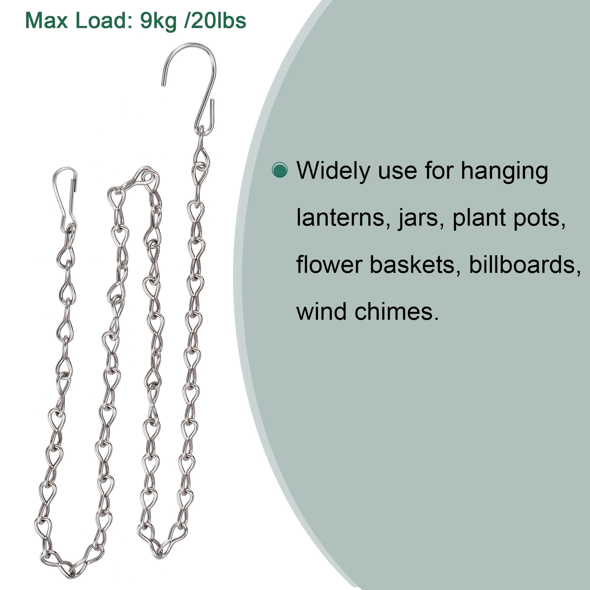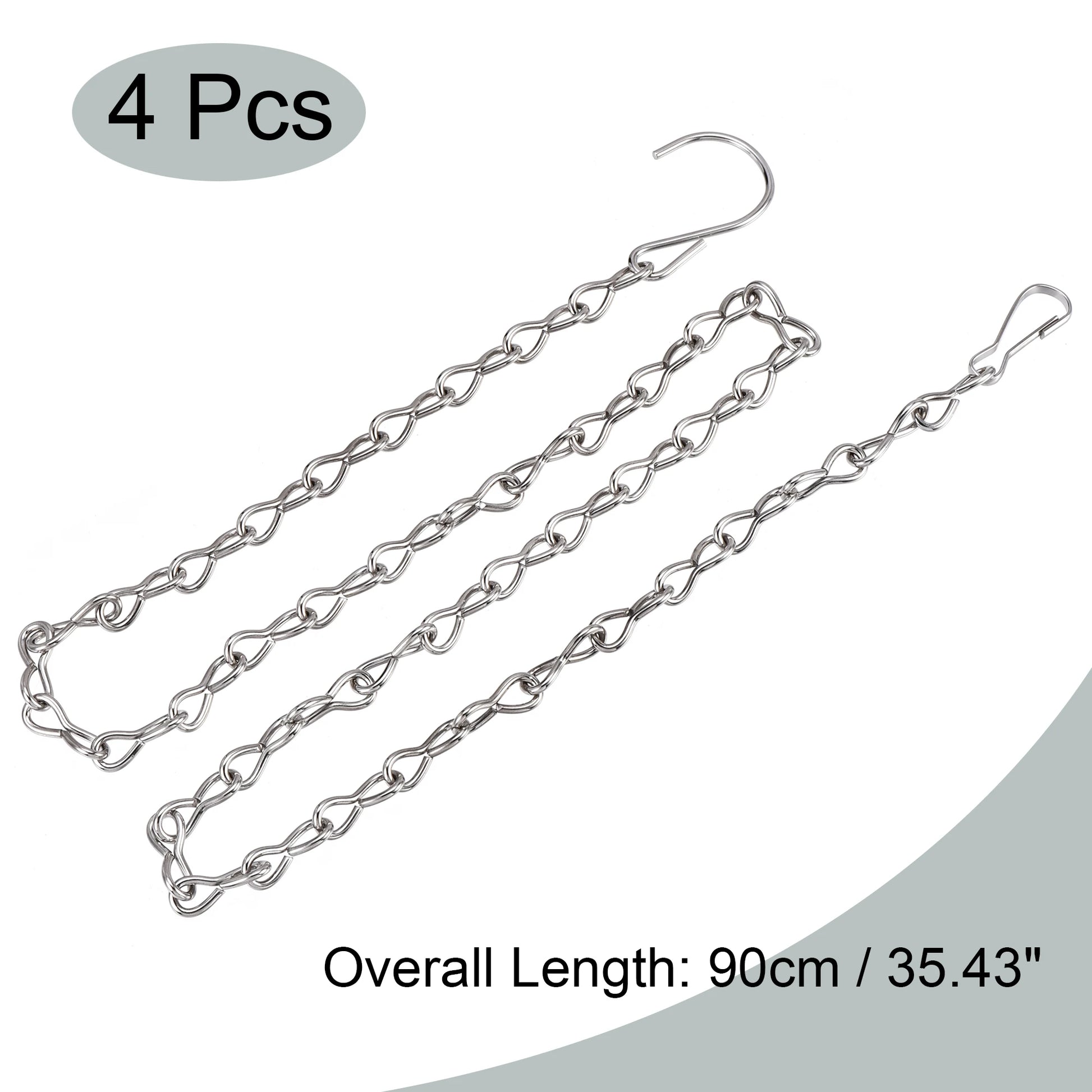 4Pcs Hanging Chains 90cm Extension Link with S Shaped Hooks for Plant Basket Lantern Ornament Silver Tone