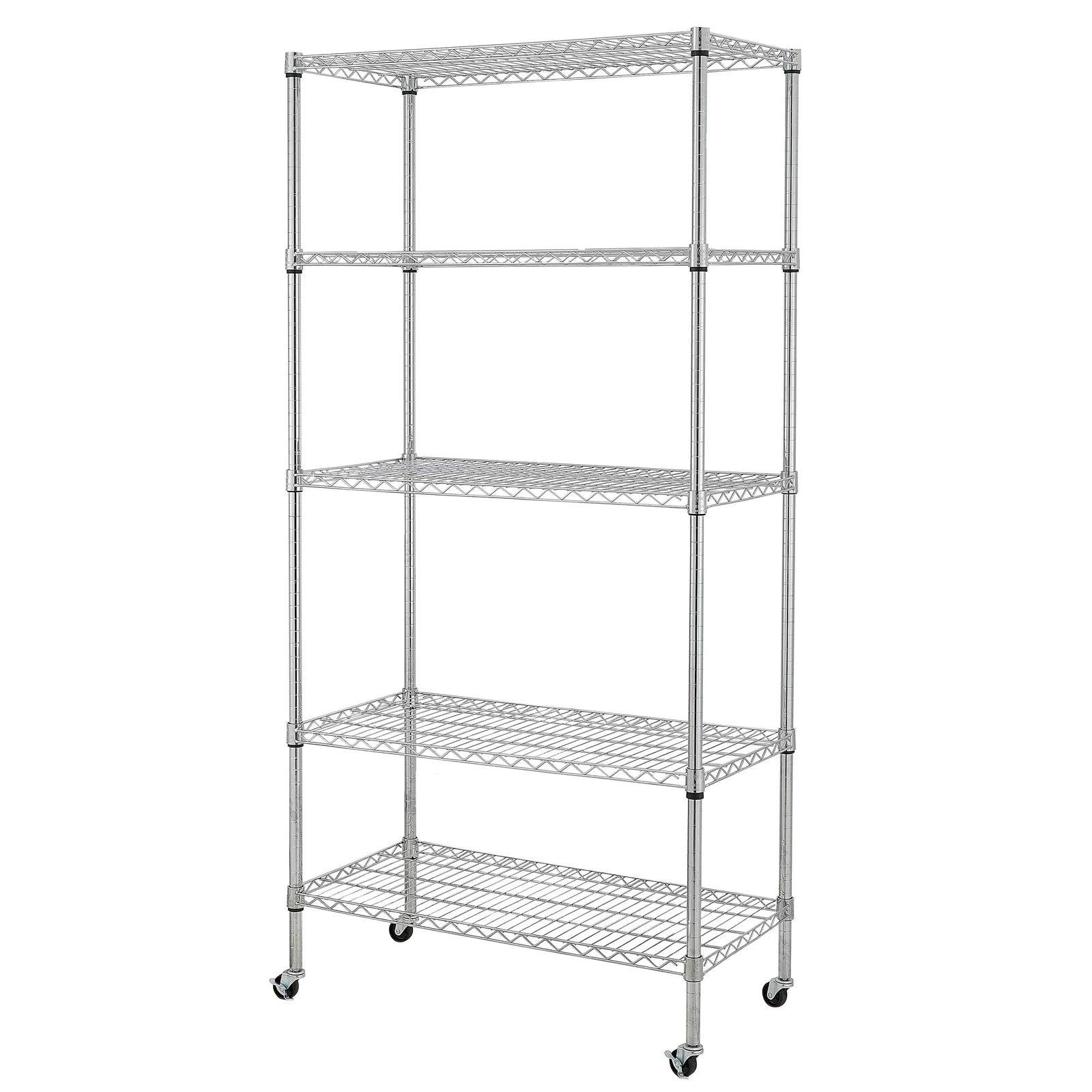 5-Tier NSF-Certified Steel Wire Shelving with Wheels Chrome