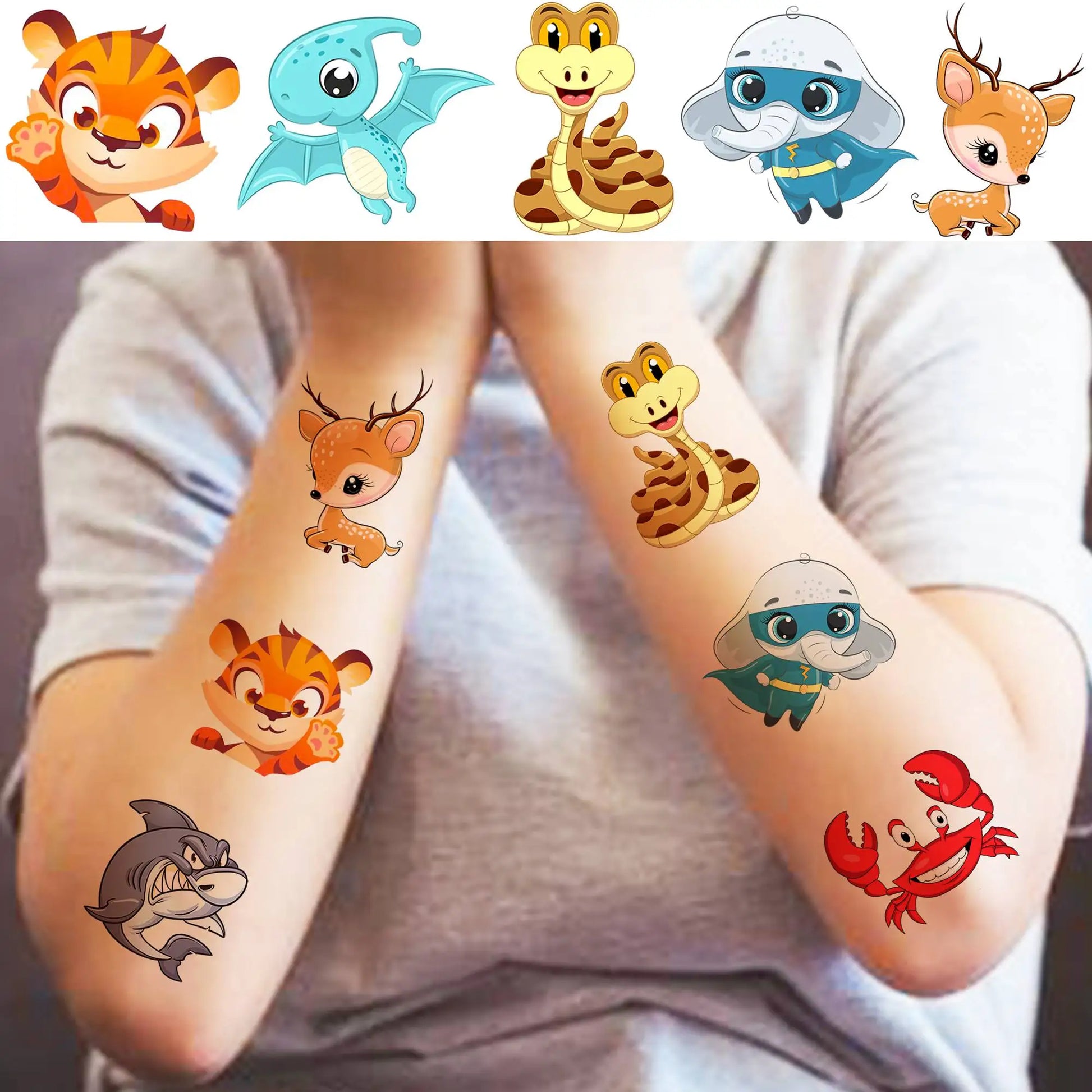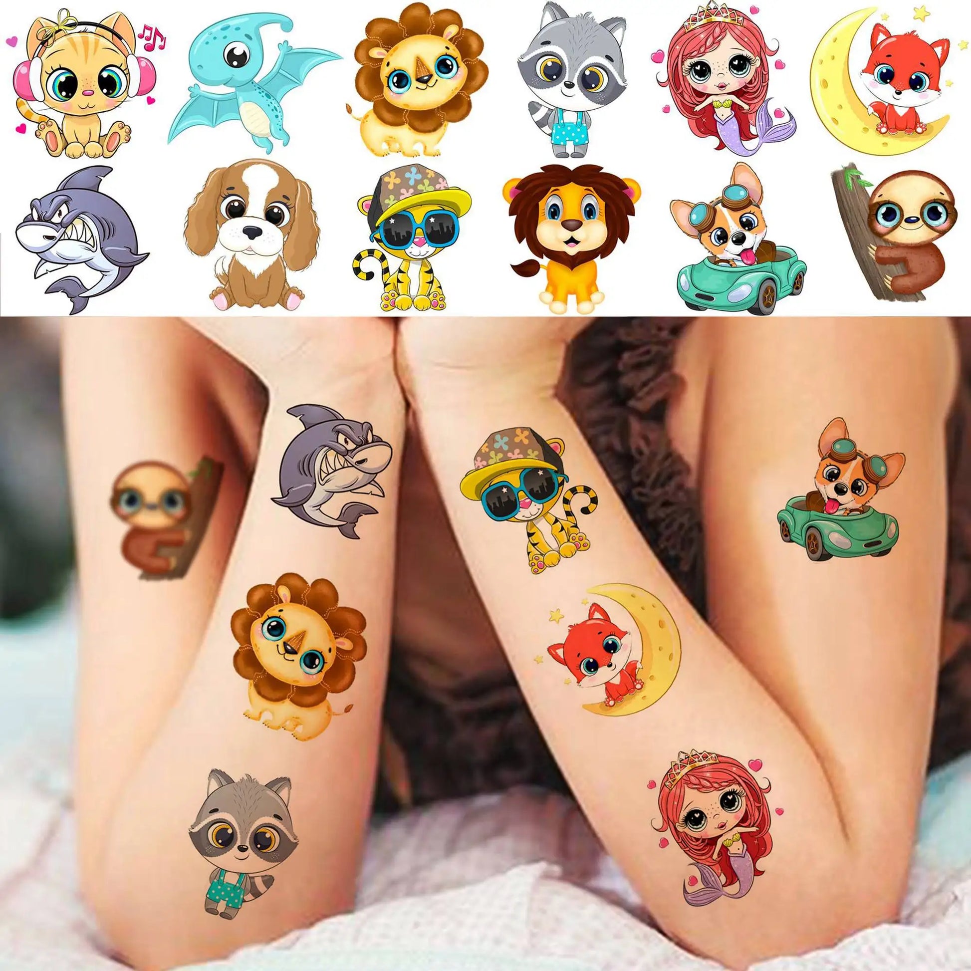 50 PCS 3D Cute Animals Temporary Tattoos For Men Women, Cartoon Animals Lion Dog Cat ZOO Fake Tattoo Sticker Kids Birthday Gifts