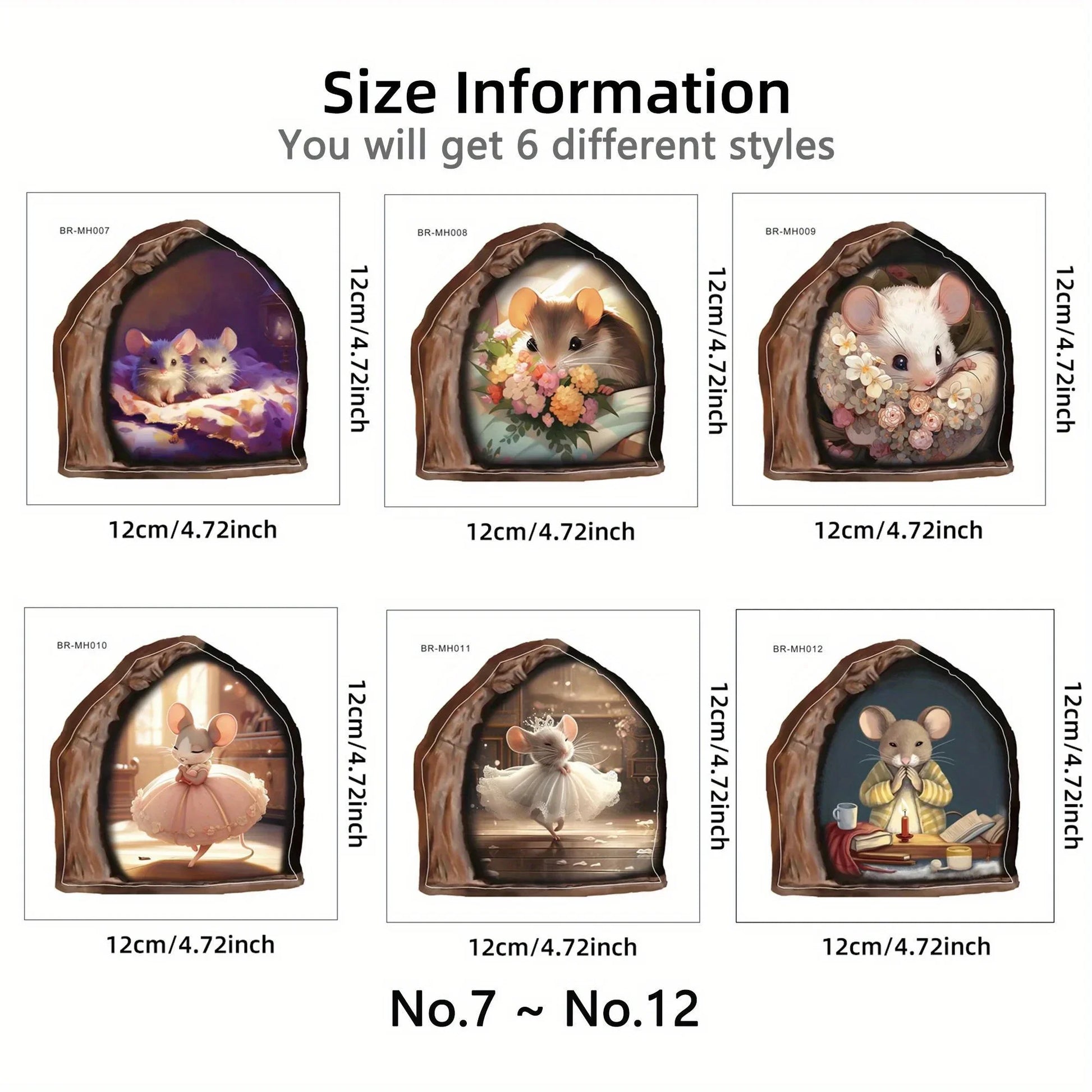 6pcs Different 3D Mouse Hole Wall Stickers for Corner Stairs