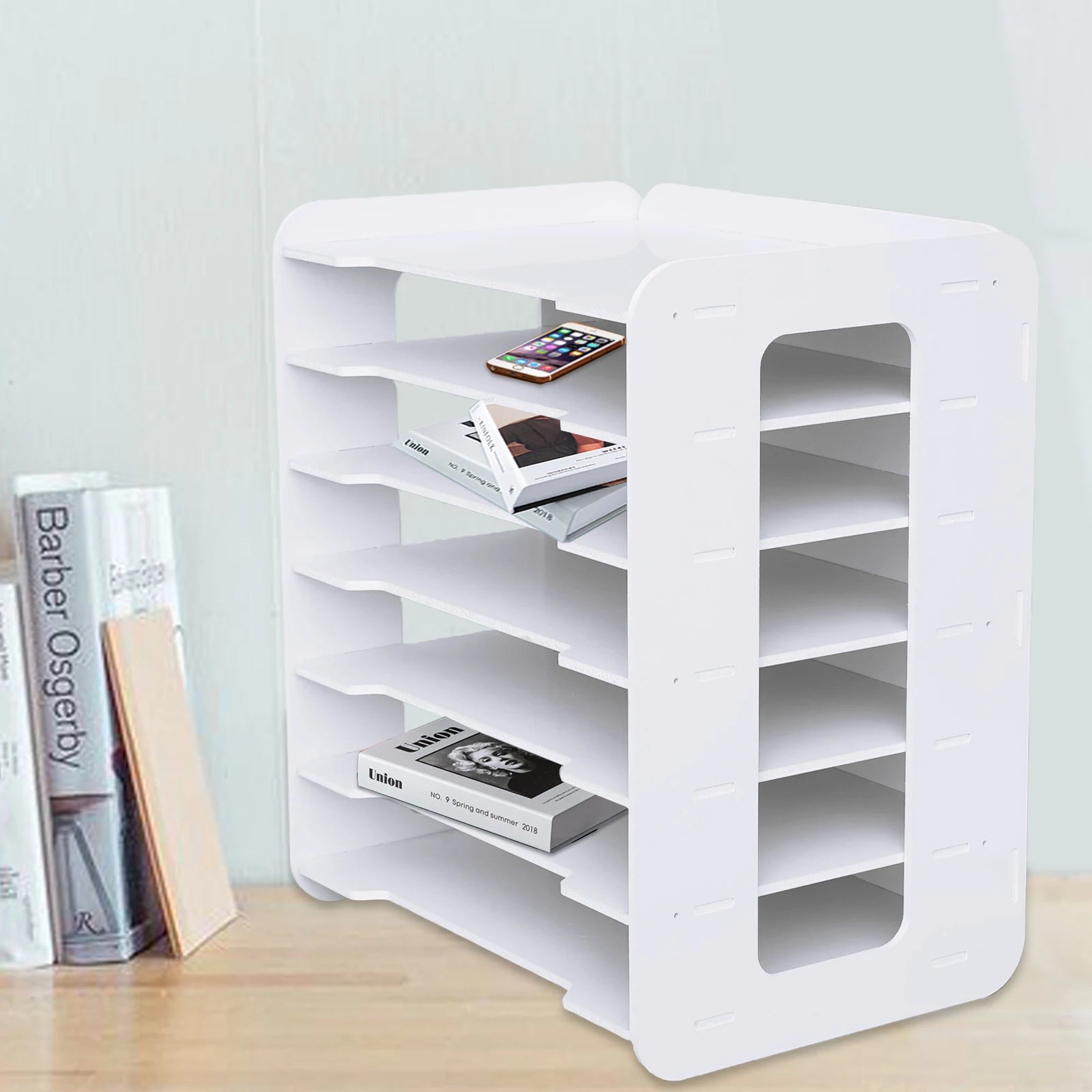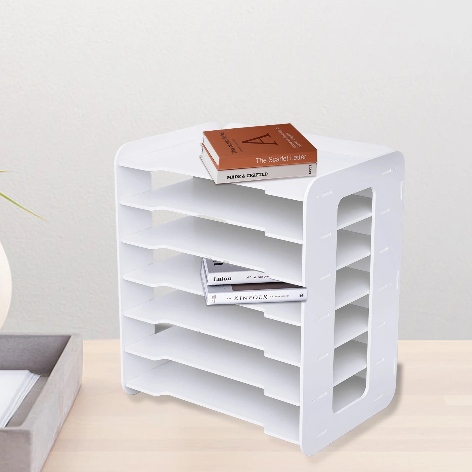 7 Tier White Wooden Office Desk Desktop Organizers and Accessories Letter Tray Paper Sorter Holder File Rack Shelf Lite