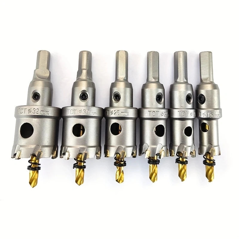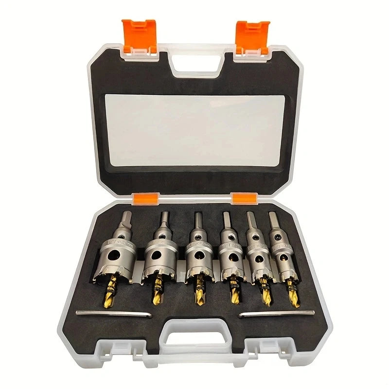 8pcs Heavy Duty Carbide-Tipped Hole Saw Set - 16-32mm Sizes for Stainless Steel & Iron Plate - Durable Metalworking Drill Tool