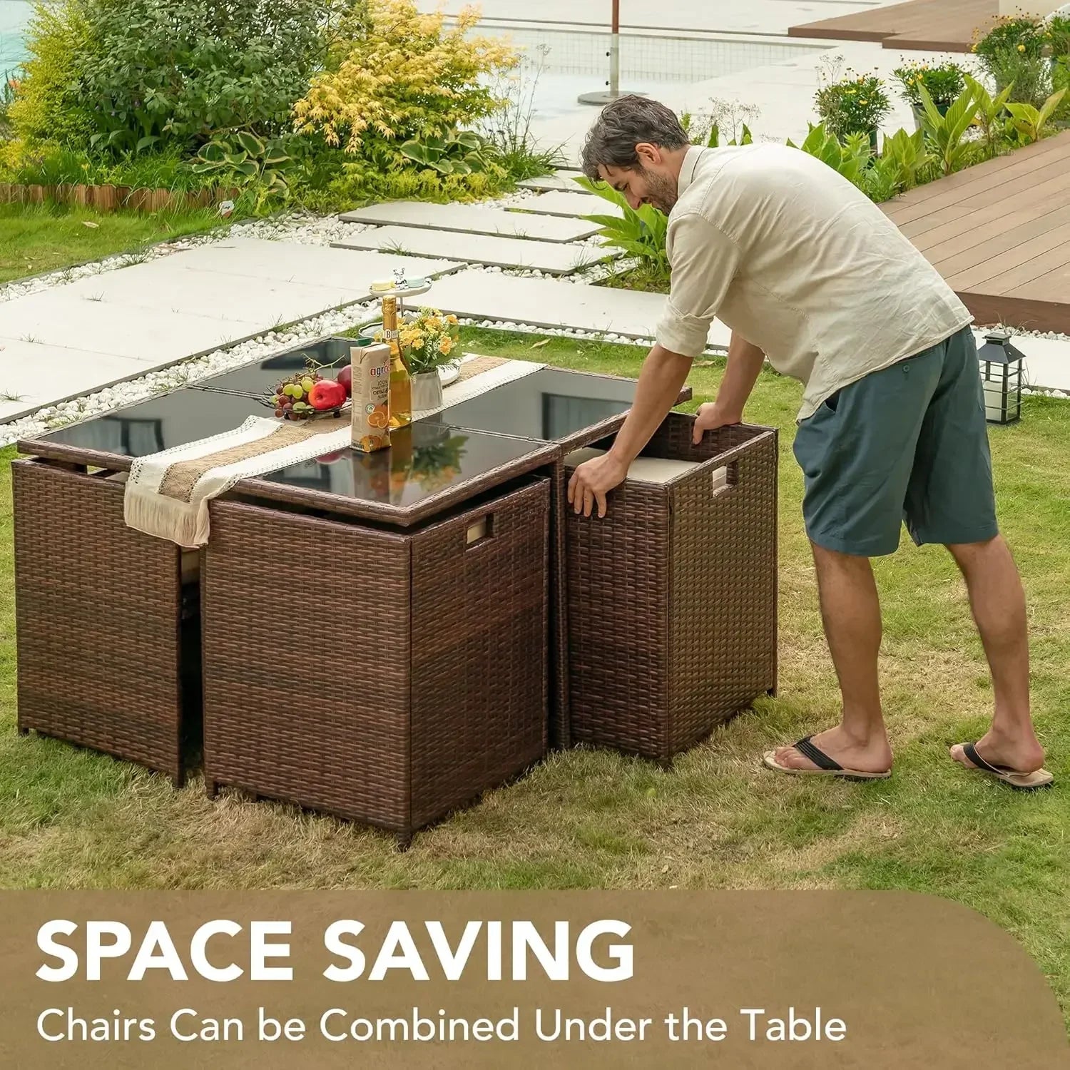 This 9-piece patio dining set offers a complete outdoor dining solution with ample seating and a spacious table. Crafted for durability and style, it provides a comfortable and inviting space for gatherings, enhancing your patio experience with both functionality and elegance.