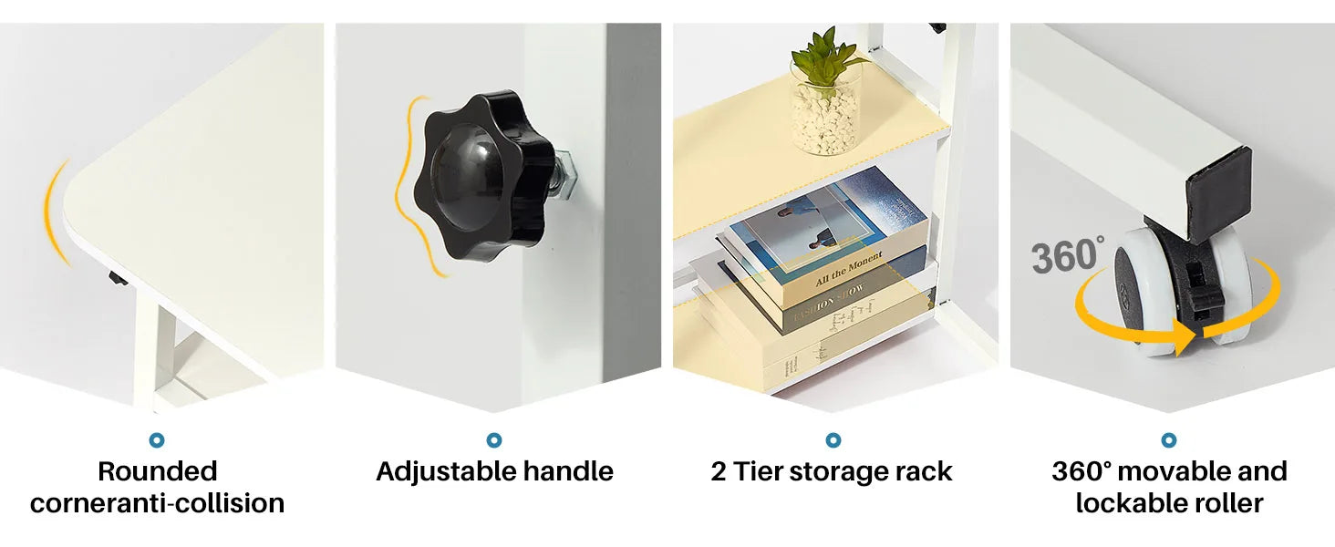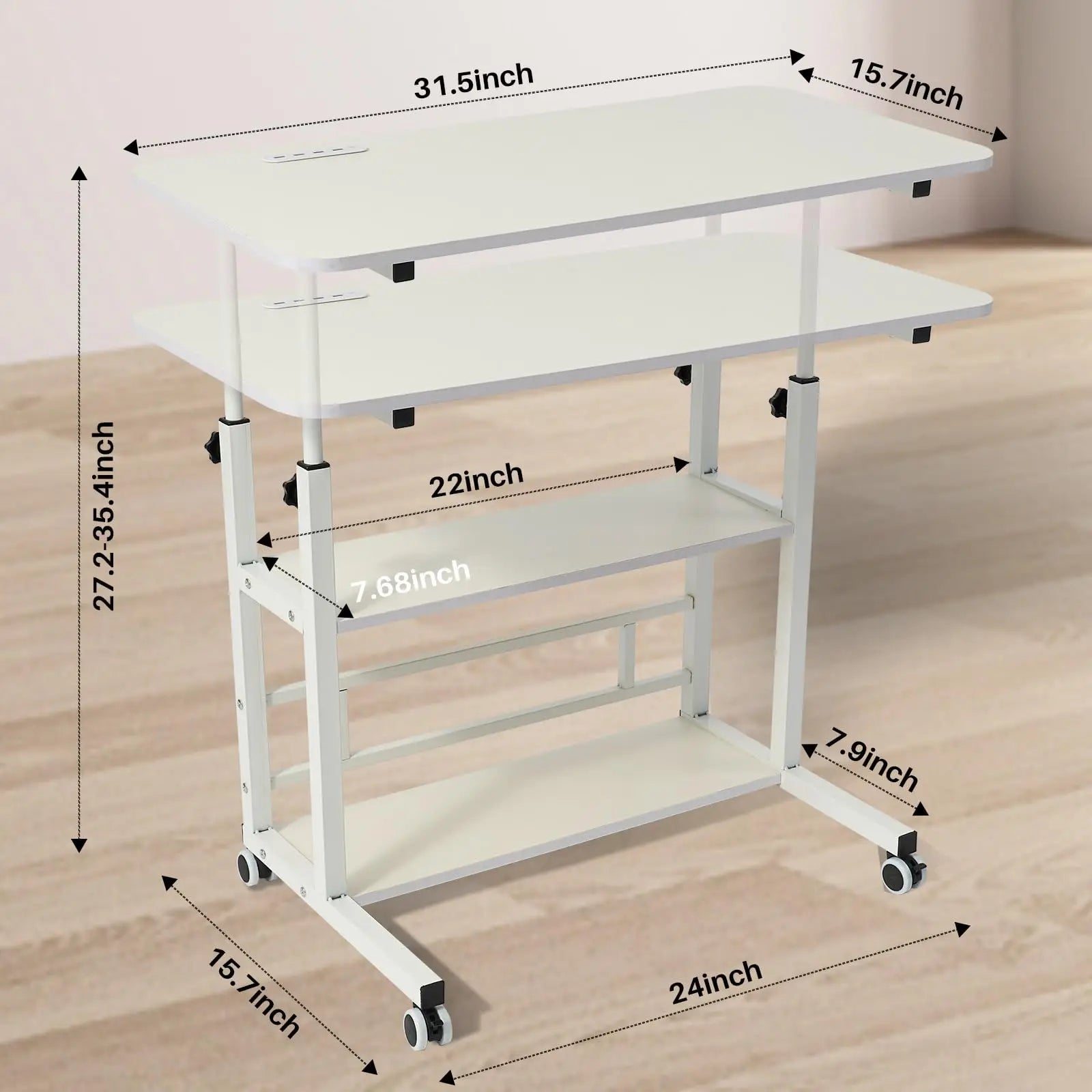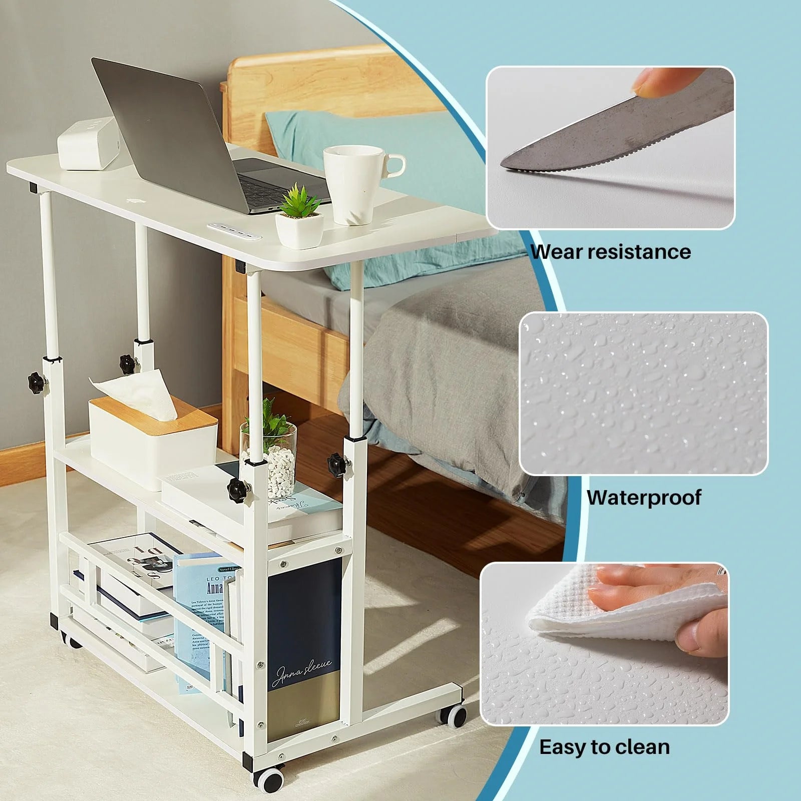 Adjustable Height Student Computer Desk with USB Port, Mobile Portable Bedside Table with Storage, 31.5" Standing Desk for Sofa