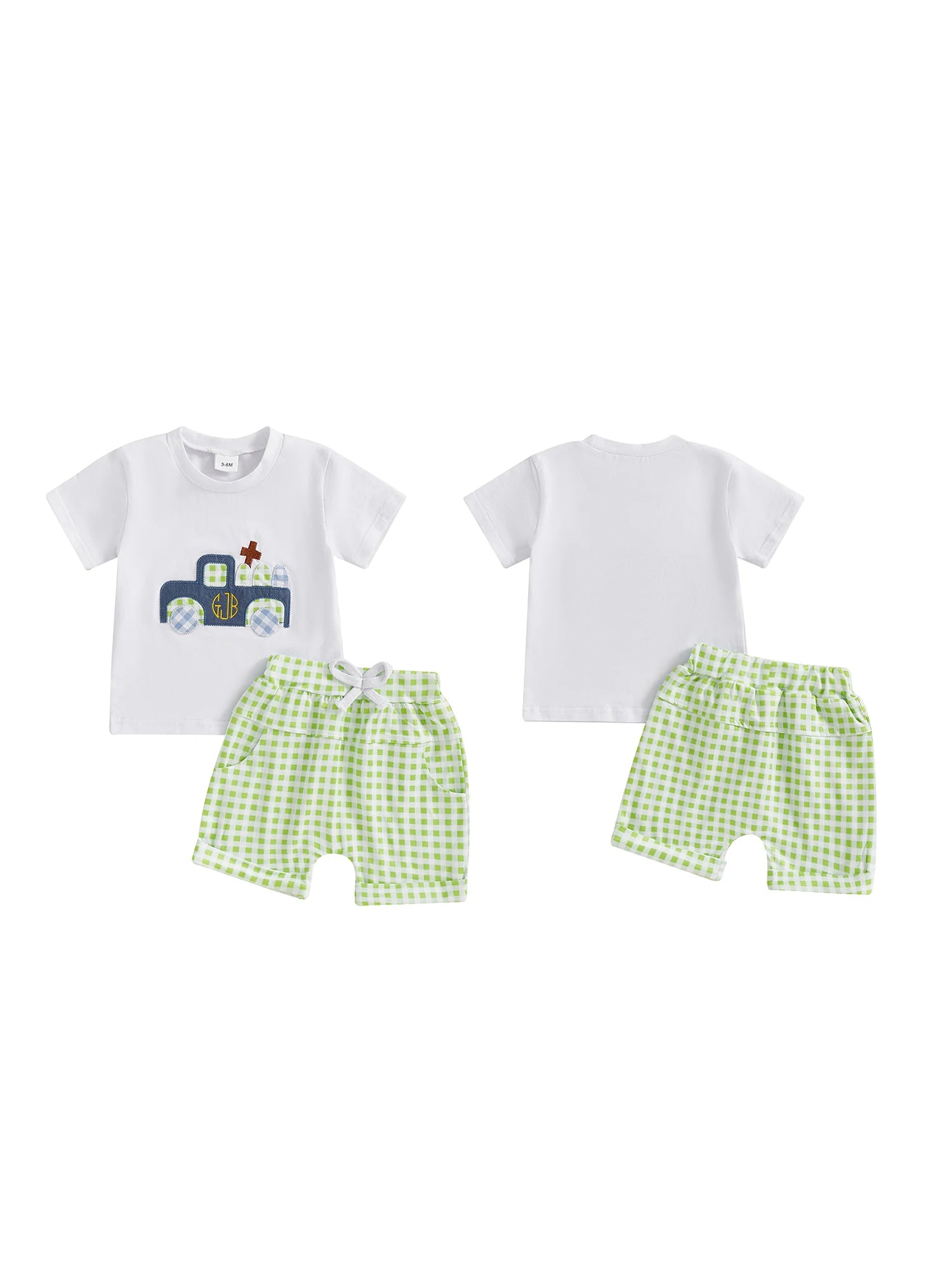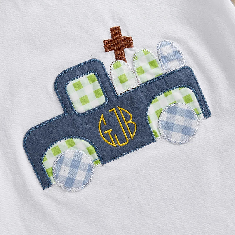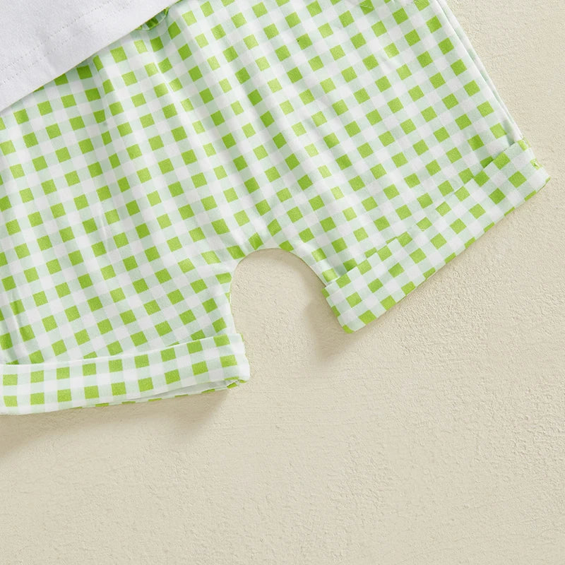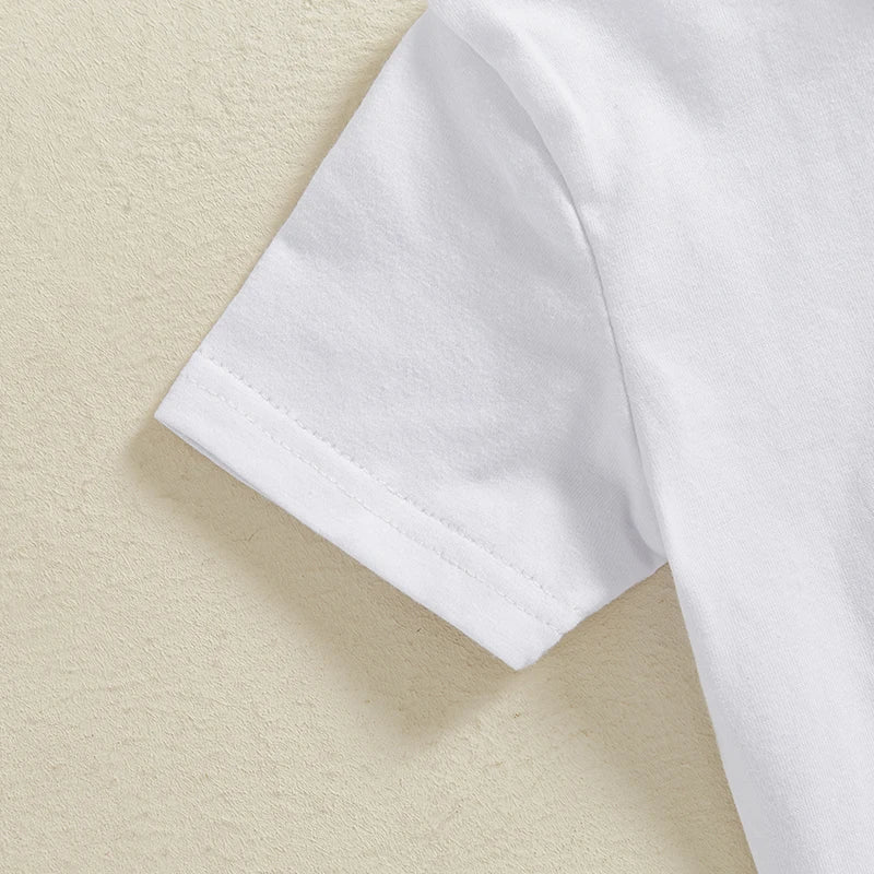 Adorable Infant Boys Summer Outfits Embroidered Round Neck Tee and Shorts Set for Easter Celebrations - 2 Piece Set