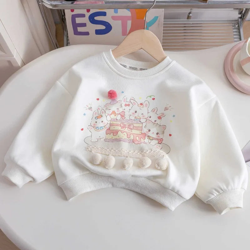Autumn Winter Girls Sweatshirts Long Sleeve Sweater for Kids Cartoon Cat Children Pullovers Toddler Outerwear Baby Outfits