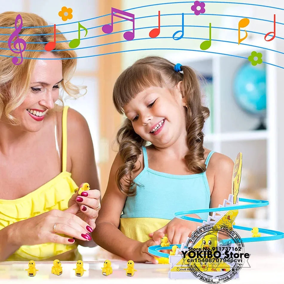 Baby Toys Electric Duck Track Slide Toys Boys Girls Electric Climbing Stairs Toy LED Lights Musical Slide Toys for Children Kids