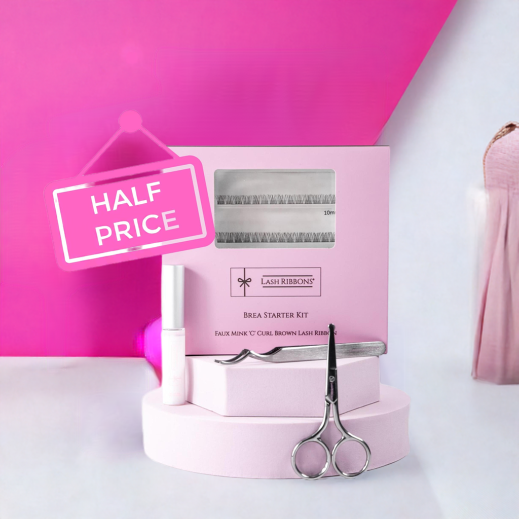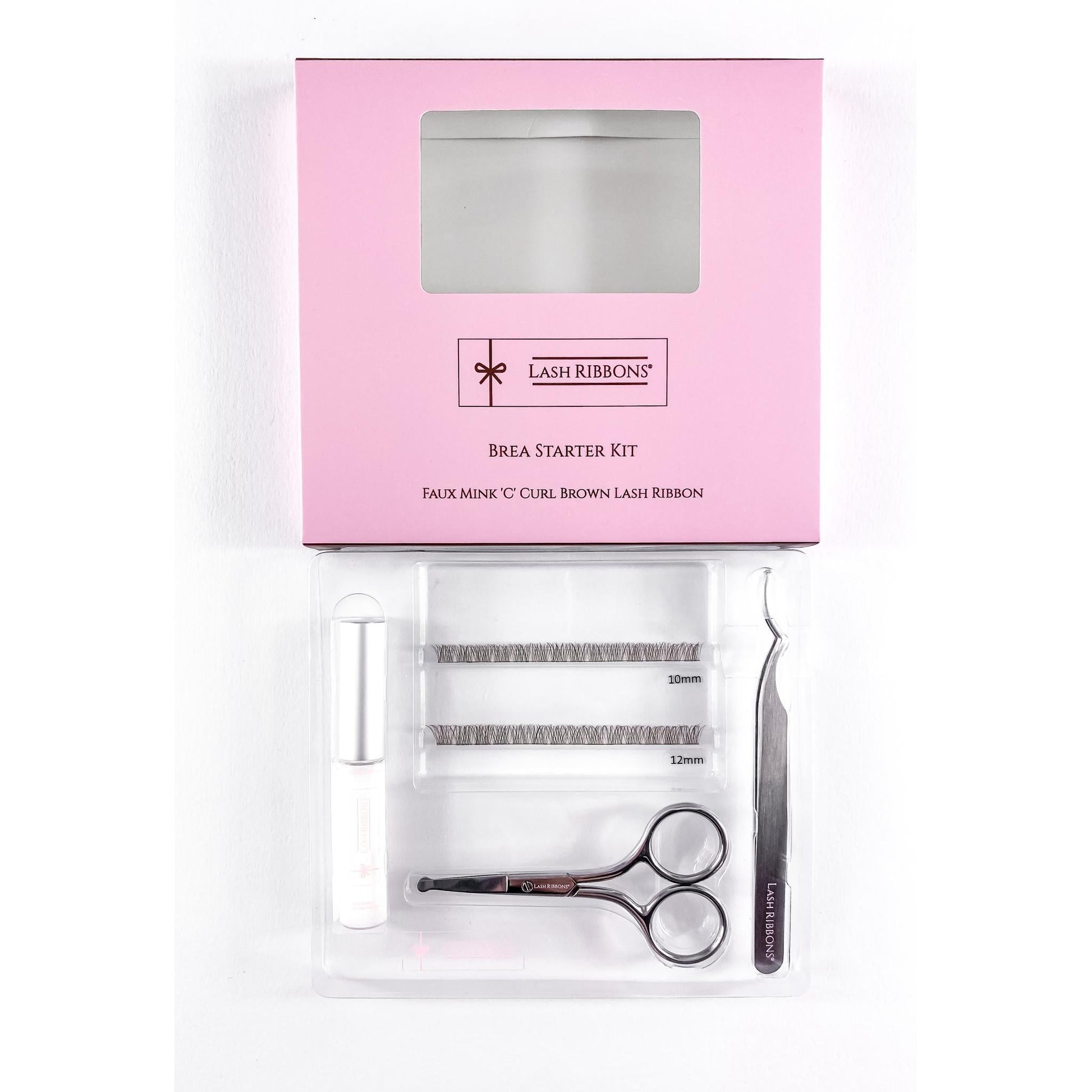 Boxed 'C' Curl Brown Half Lash Ribbons® Starter Kit (With Clear Lash Bond)