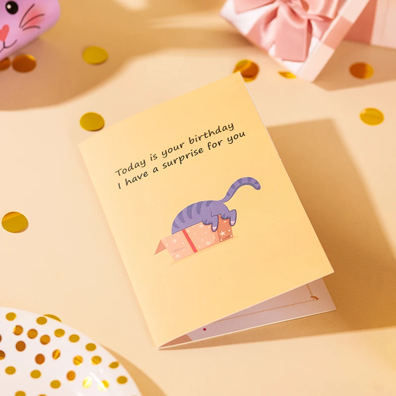 Cats Pop-up Entertaining Greeting Card Cute Docile Kittens Birthday Card With Envelope Creative Celebration Birthday Gifts