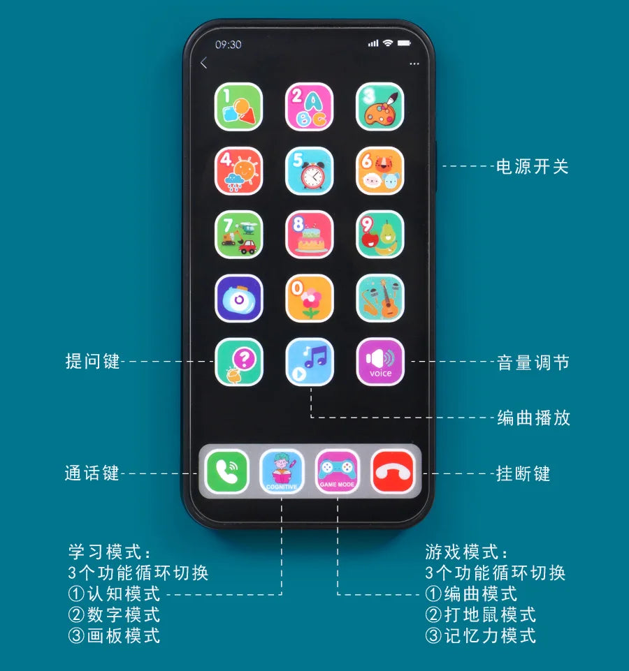 This simulation touchscreen phone introduces children to modern technology through interactive educational features and multi-functional gameplay designed for early cognitive development. The responsive touchscreen interface mimics real smartphone operation while delivering age-appropriate content and learning activities. English language education features support vocabulary building and language recognition during critical developmental periods. Musical accompaniment enhances engagement while supporting auditory learning and rhythm exploration. Multiple functional modes accommodate varied learning objectives and sustained interest across extended play sessions. The intuitive design enables independent exploration and discovery without requiring adult guidance. Durable construction withstands enthusiastic tapping and regular use. Perfect for children transitioning to technology-based learning, this toy bridges imaginative play with educational content while developing digital literacy skills in