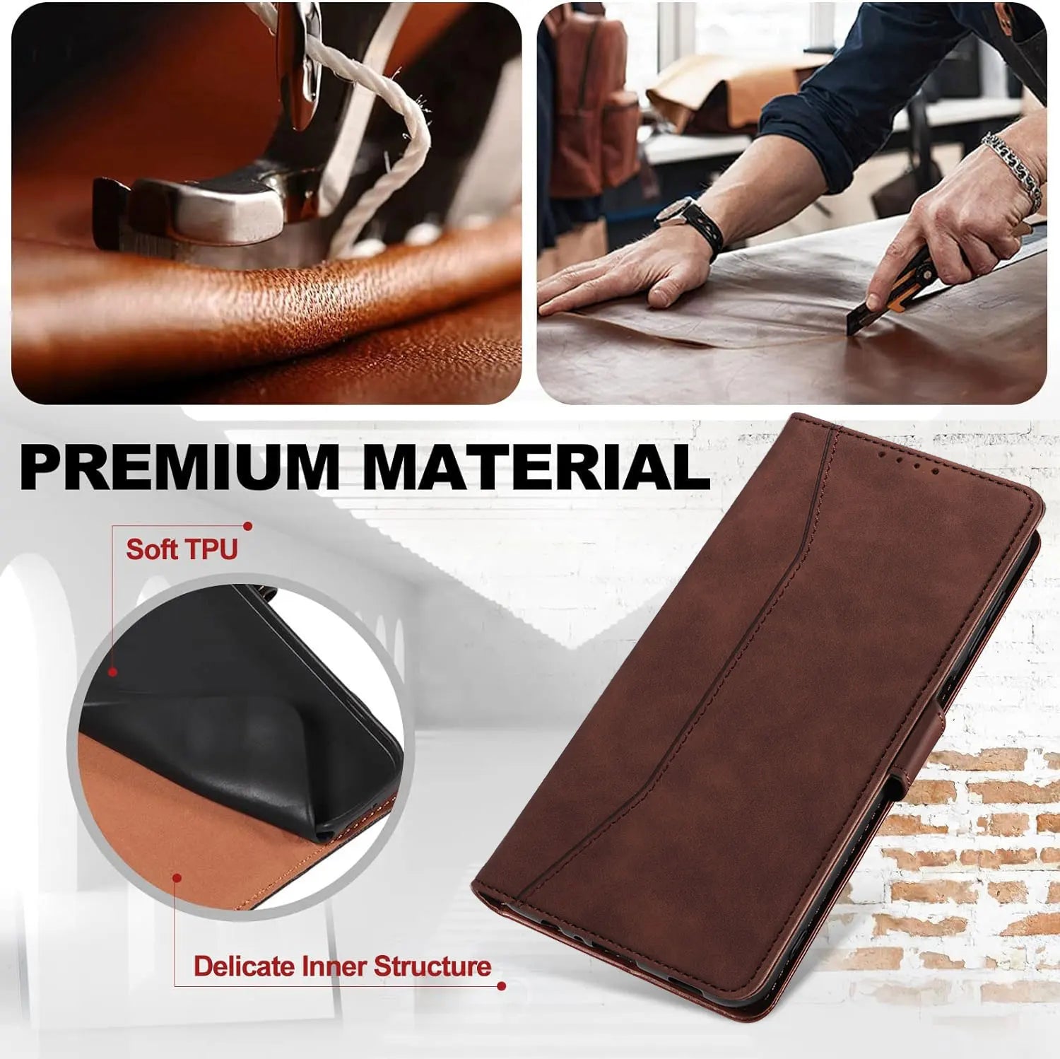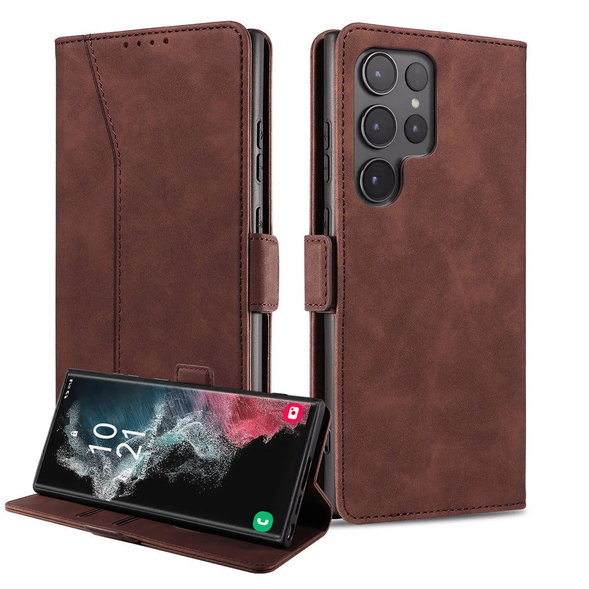 For Samsung Galaxy S22 Ultra 5G Leather Case Rugged Phone Flip Card Slots Magnetic Wallet Phone Cover Dark Brown