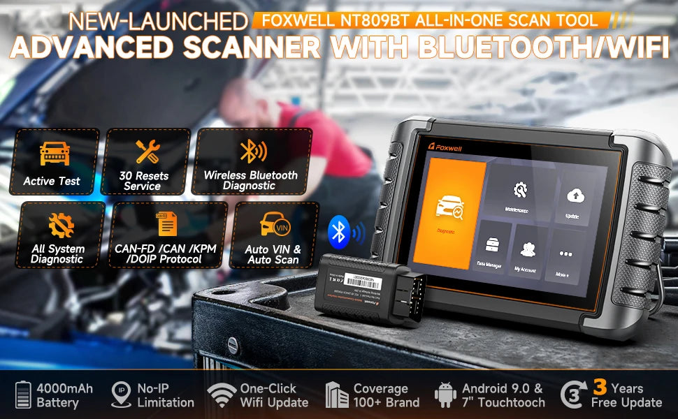 Foxwell NT809TS Bidirectional Car OBD2 Scanner Diagnostic Tool TPMS programming OBD2 Bluetooth Scanner All System Active Test