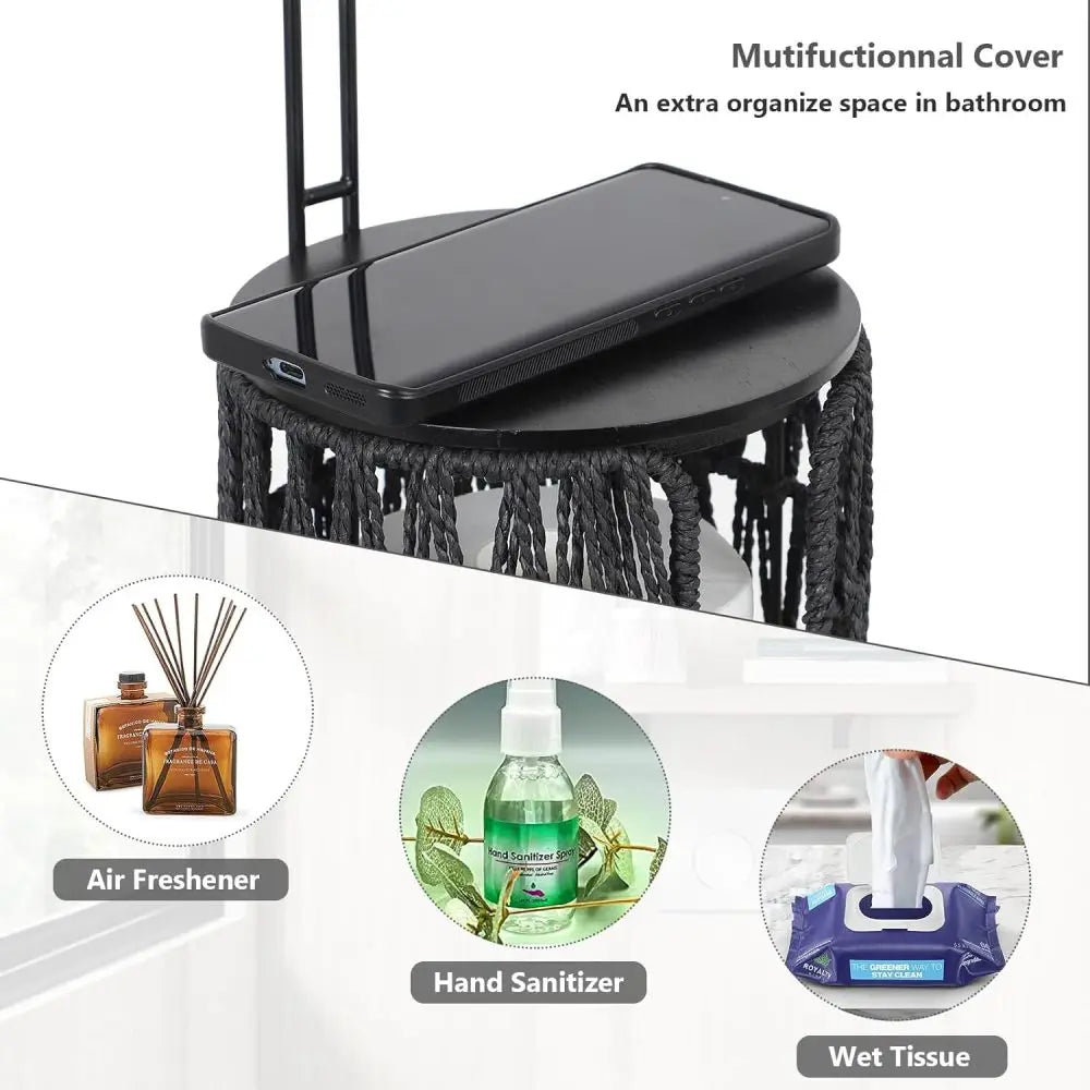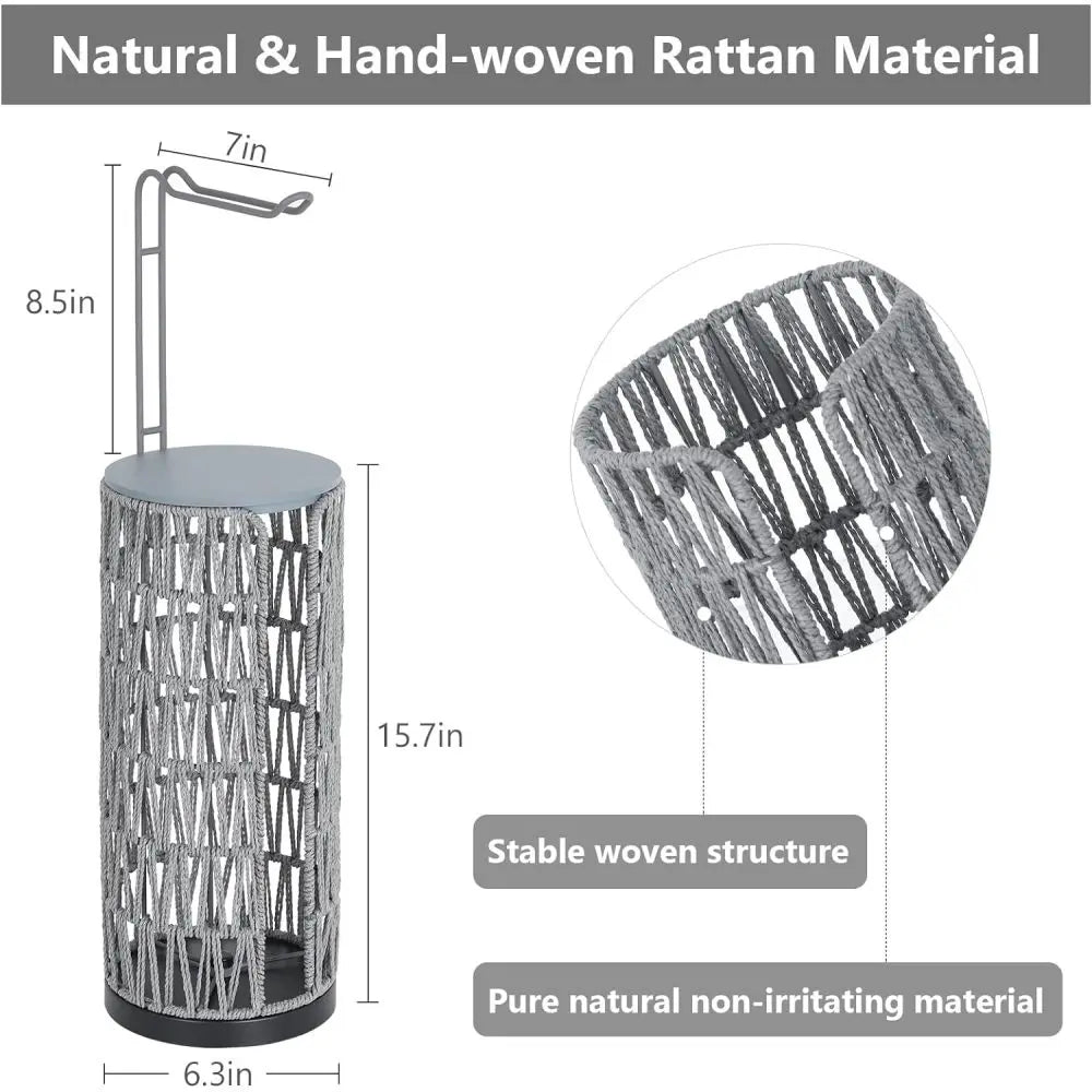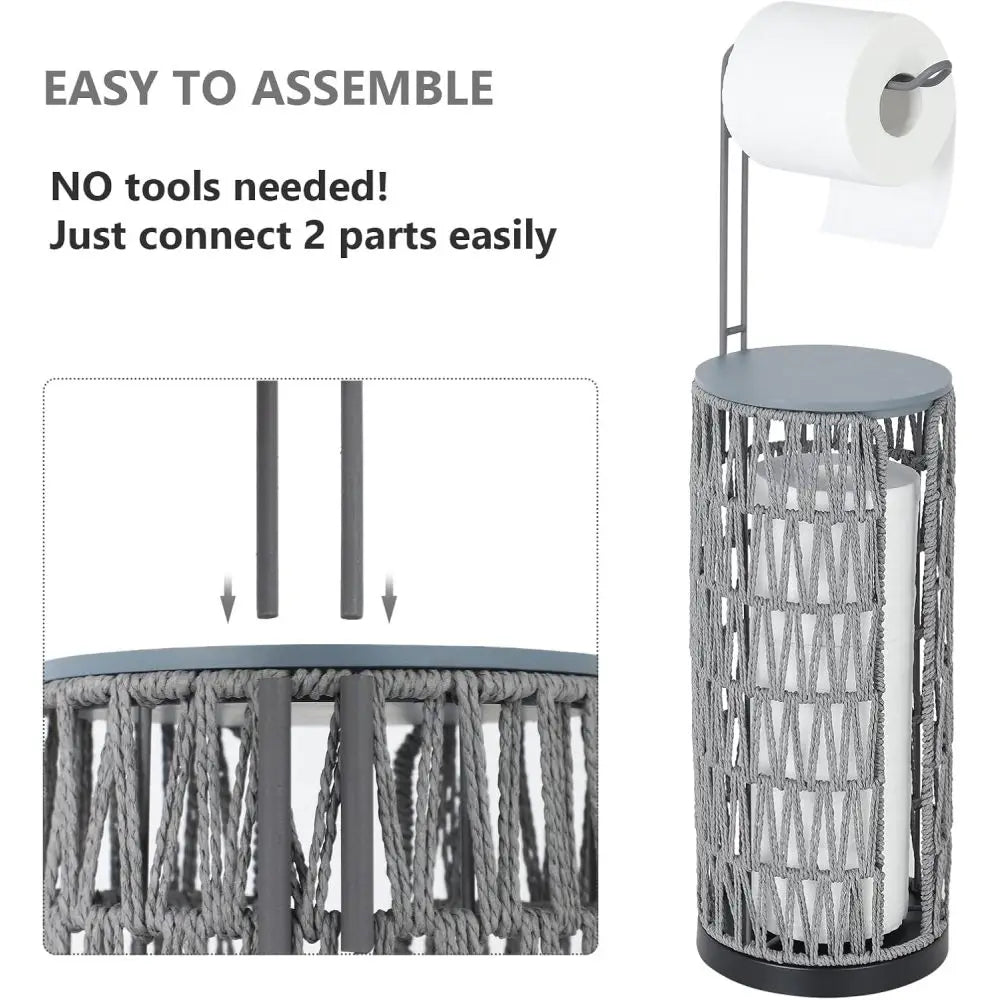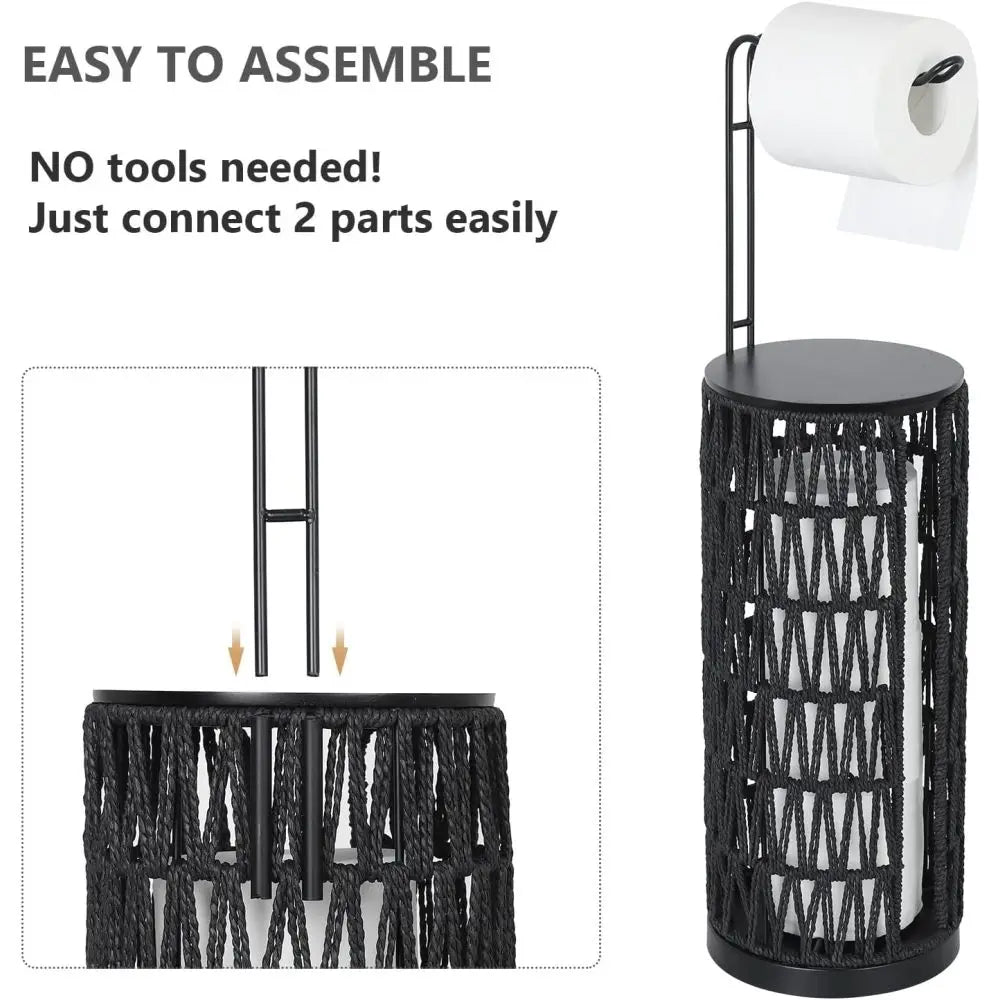 Freestanding Toilet Paper Holder with Storage,3 Rolls of Tissue Holder for Bathroom,Handmade WovenToilet Roll Holder Stand