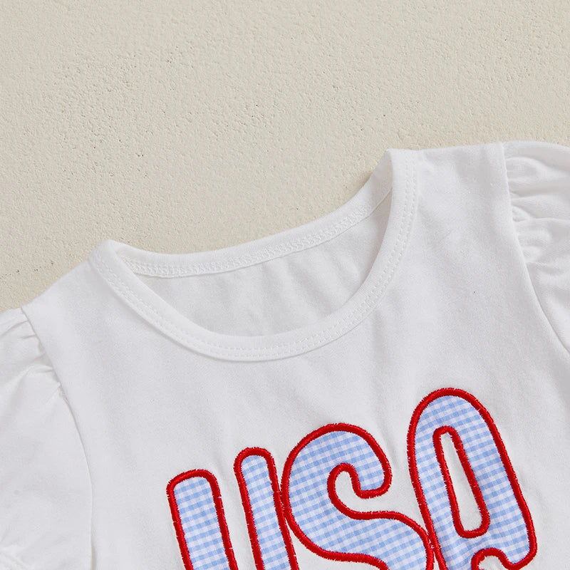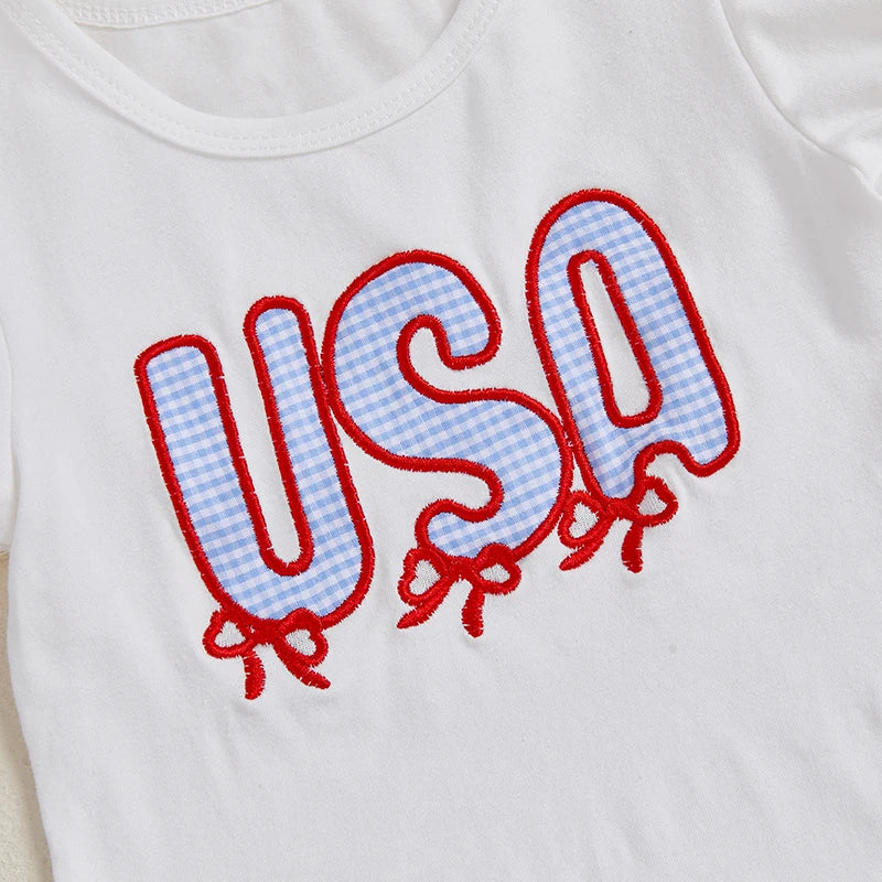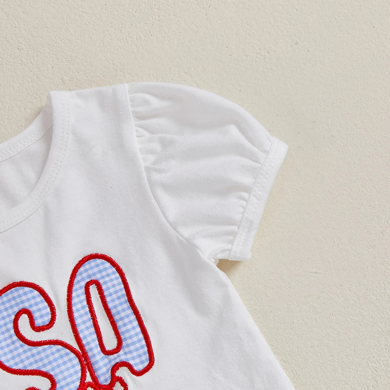 Girls American Flag Print Sleeveless Dress and Denim Jacket Set Adorable 2 Piece Outfit for Independence Day Celebrations