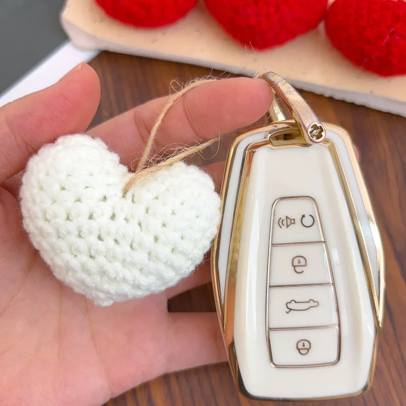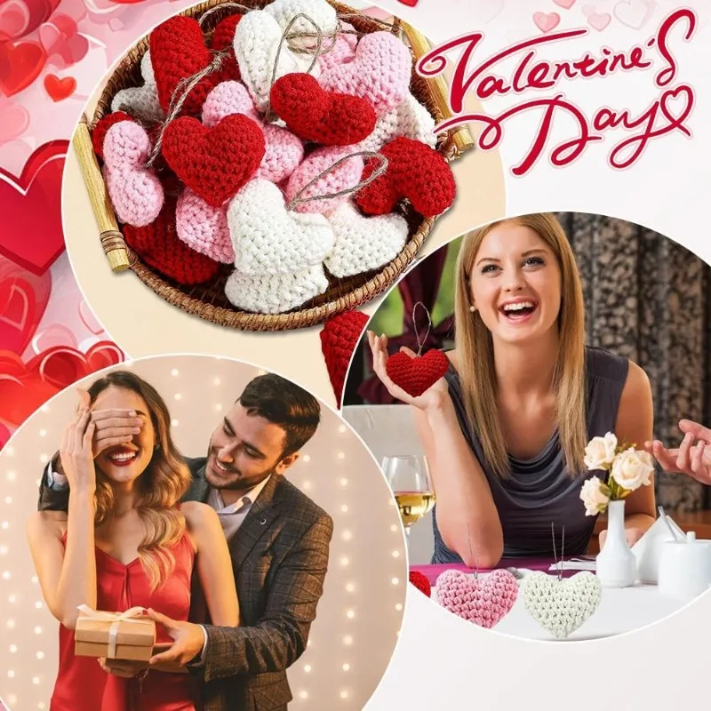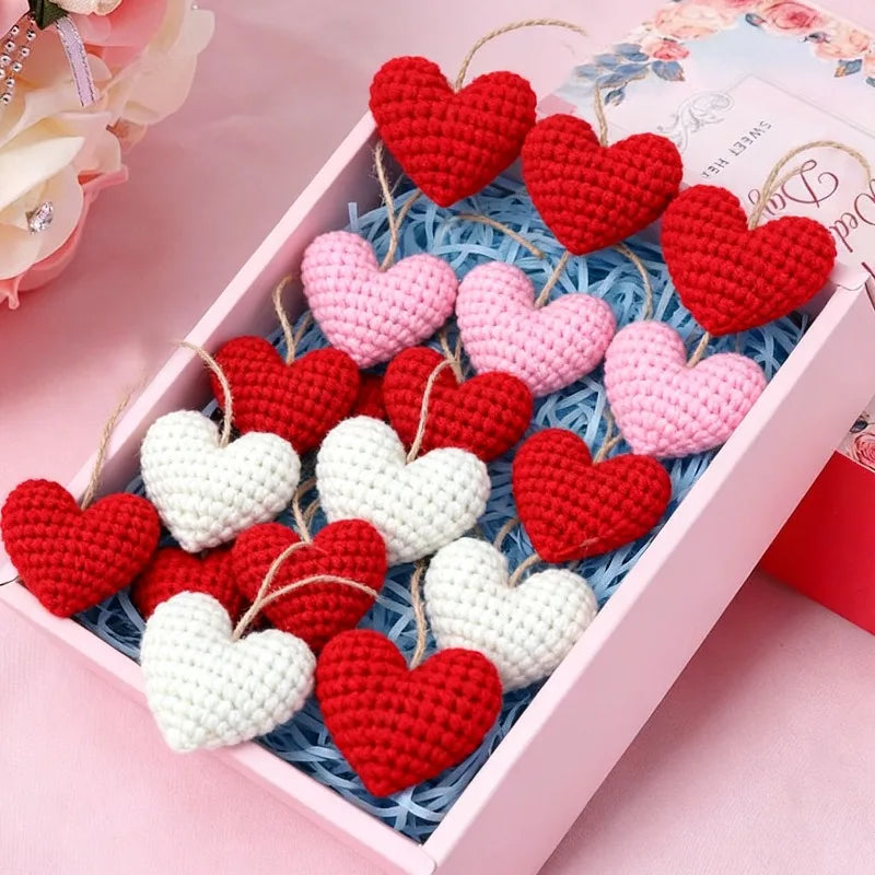 Handmade Crochet Heart Shaped Ornaments Valentine's Day Crochet Flower Bouquet DIY Clothing Shoes Socks Decorative Accessories