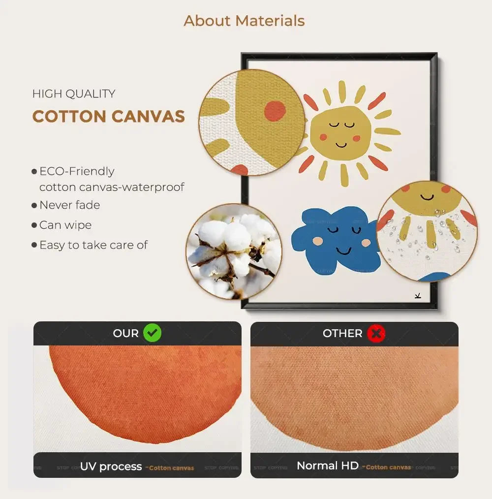 1. Material: Eco-Friendly Cotton Canvas-Waterproof ,Never Fade, Can Wipe