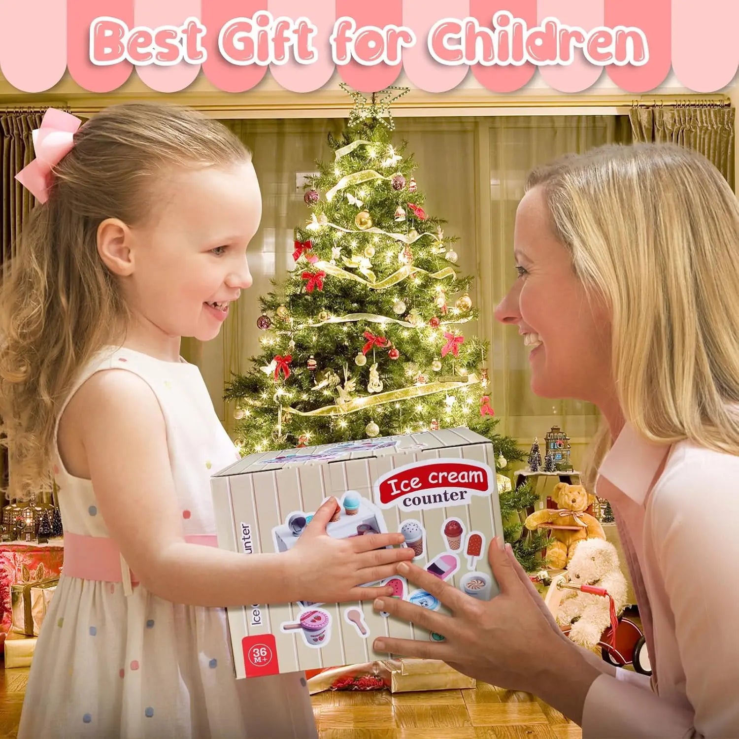 Ice Cream Counter Playset For Kids Montessori Pretend Play Food Toys Kitchen Accessories With Coin Role Play For Kids Girls Boys
