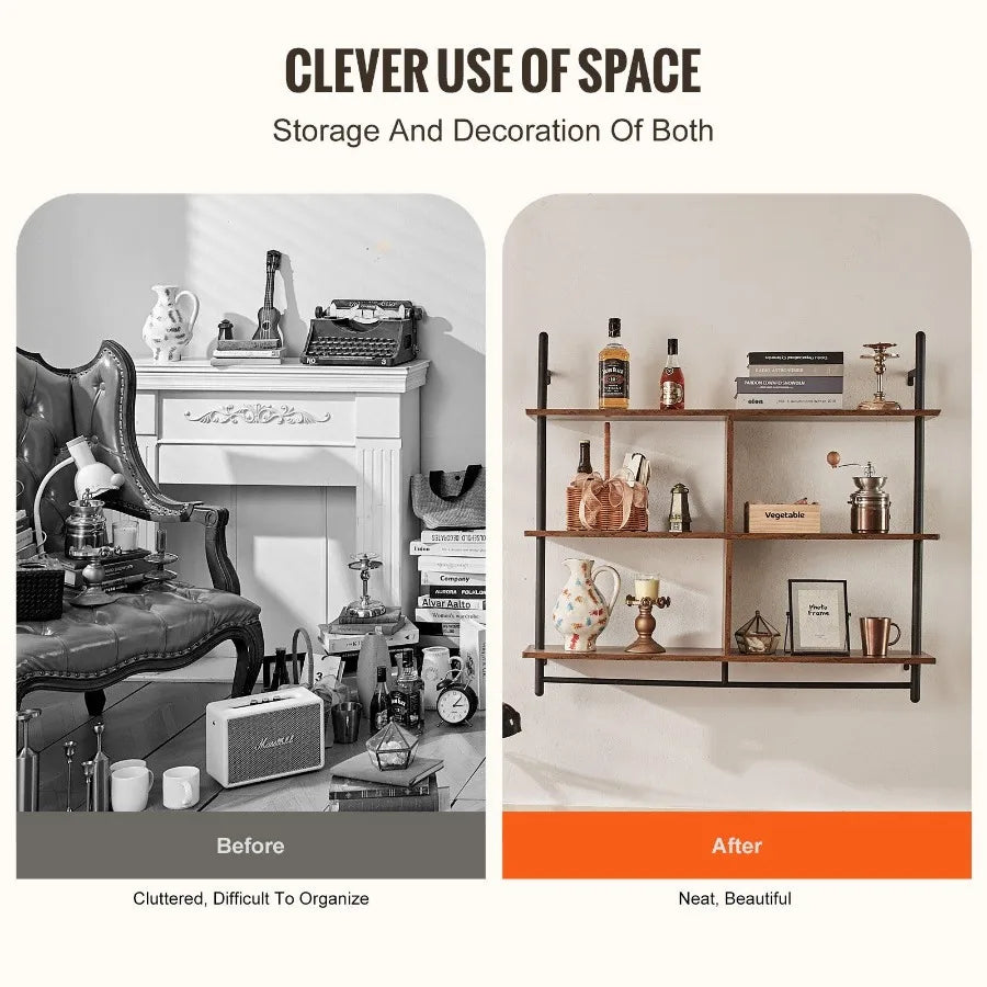 Industrial Pipe Shelf 3 Tier 41.5x9.84in WallMount for Kitchen Bedroom