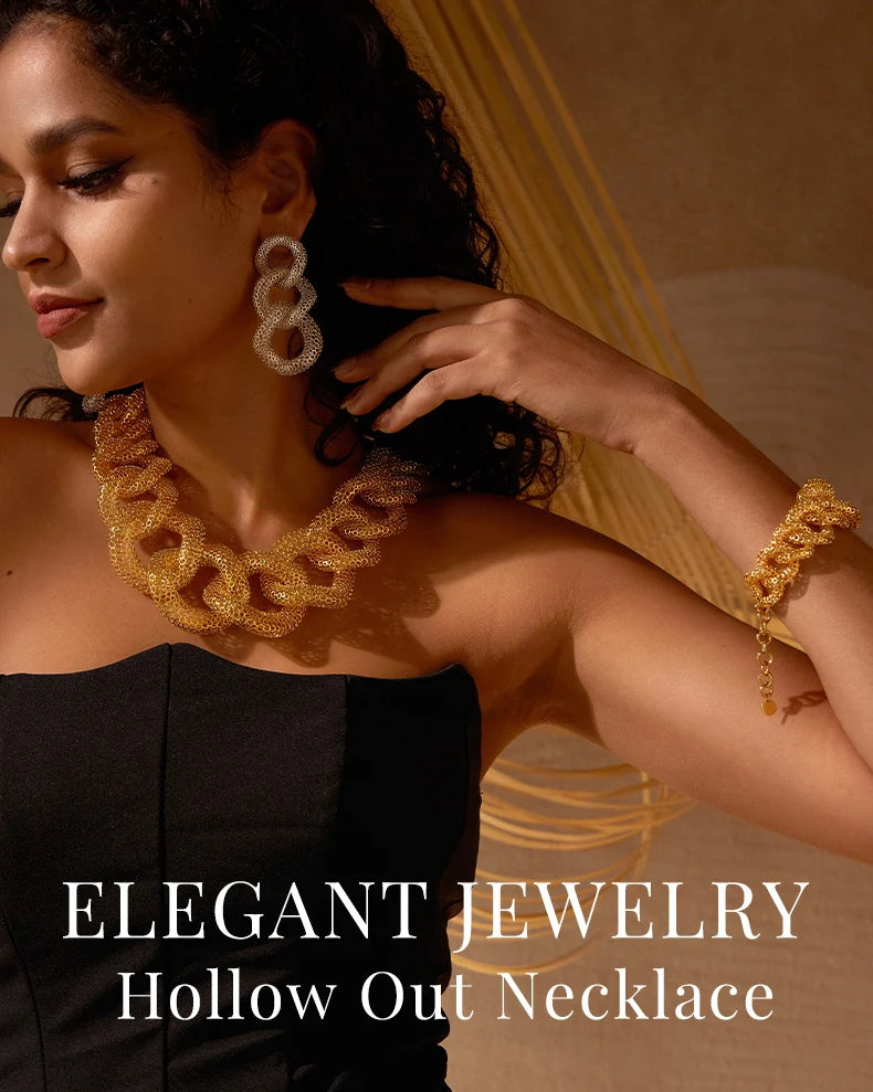 IVOG Multi ring Hollow Chain Design Necklace For Women Gold Color Necklaces Brass Collar Fashion Jewelry