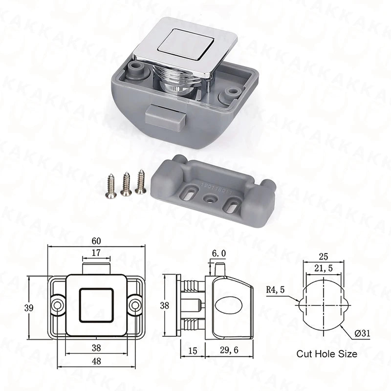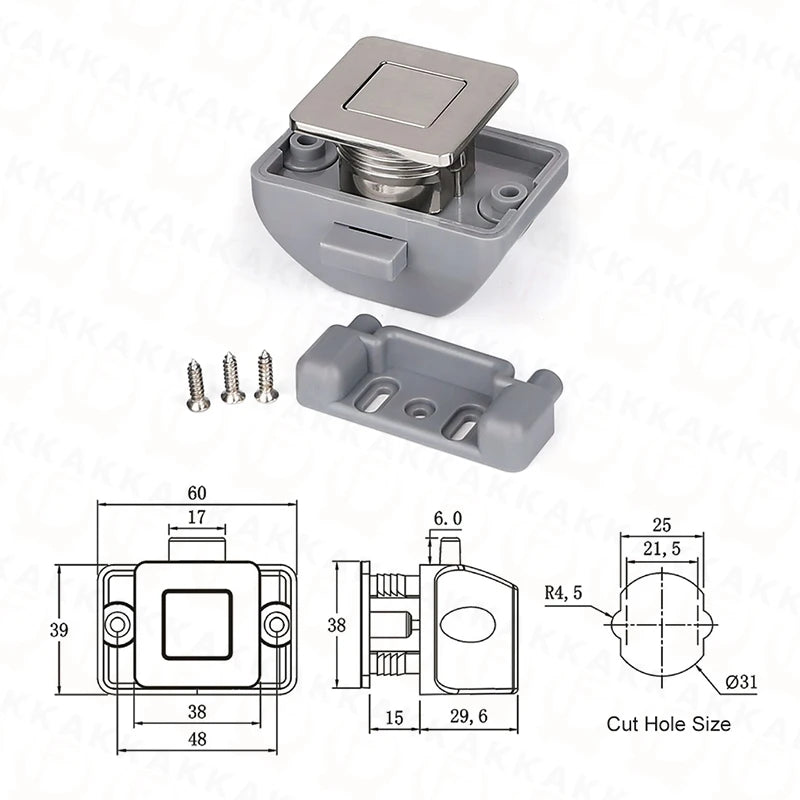 The KAK 5pcs Push Locks provide a secure and user-friendly locking mechanism for cabinets, drawers, and other furniture. Featuring a push-to-lock design, these locks ensure reliable closure while allowing quick access when needed. Made from durable materials, they offer long-lasting security and are suitable for both home and professional environments.
