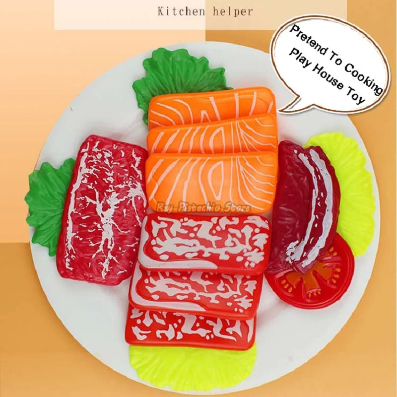 Kids Kitchen Simulation Barbecue Japanese Food Pretend Play Sushi Tuna Shrimp Wasabi Sashimi Toy Set Girl Boy Cooking Toys Model