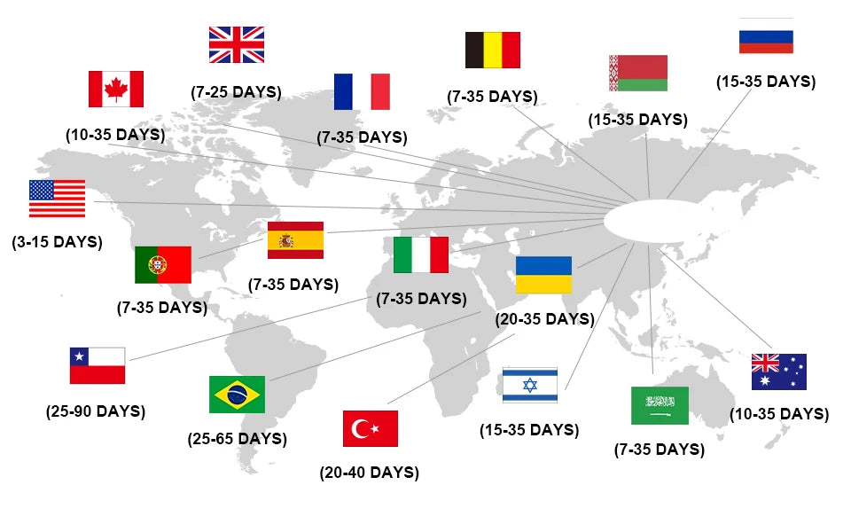 (1) About 8 to 20 business days to: Australia, Canada, Japan, Malaysia, South Korea, Singapore, UK, USA;