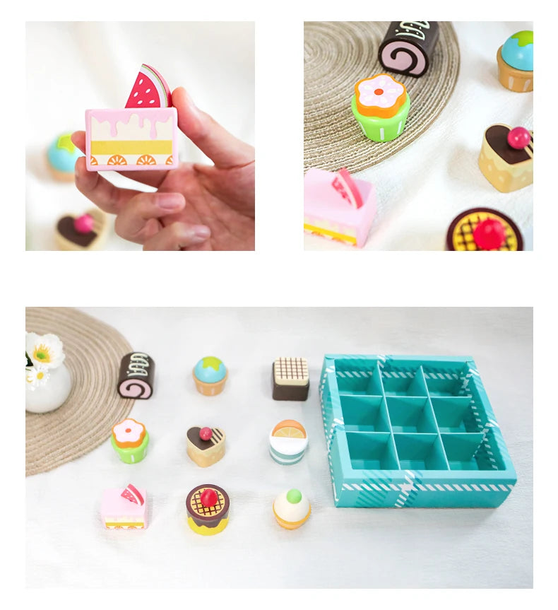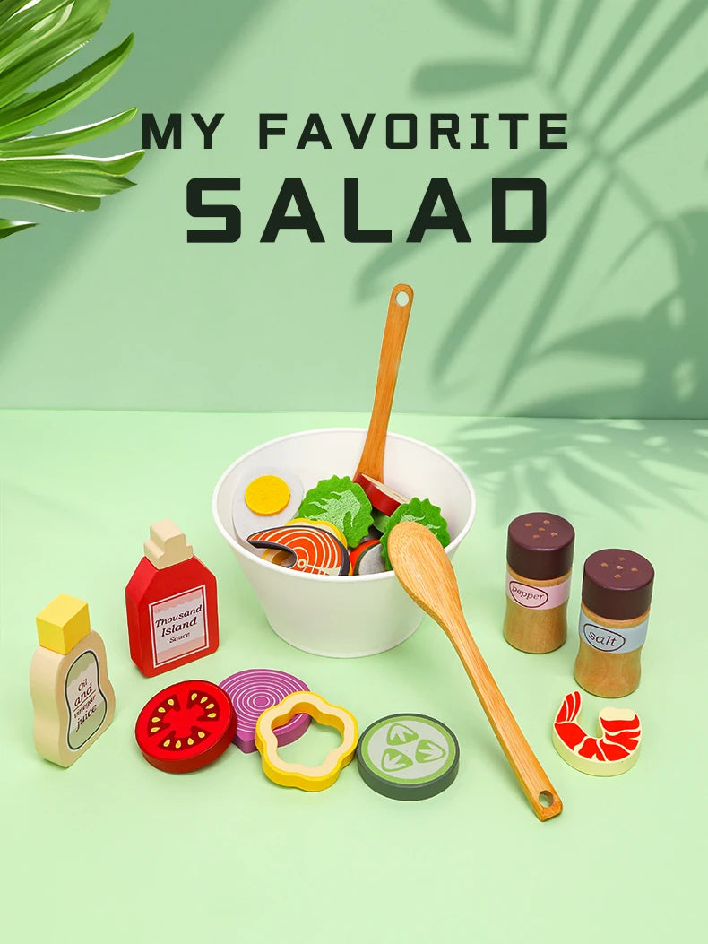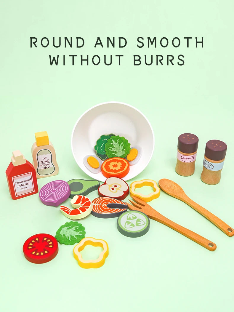 Kitchen Pretend Play Toys Wooden Simulation Food Accessories Pizza Salad Dessert Set Montessori Educational Toy for Toddler 3+