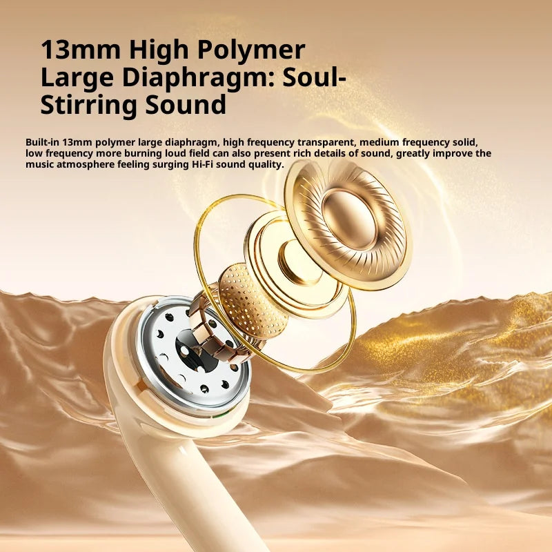 The wireless ear buds has a built-in touch sensor and Bluetooth 5.4 for fast response, without pressing hard. Gentle touch, delicate control finger touch control Play Music/ Answer Call/ Noise cancelling switch/ wake up SIRI.