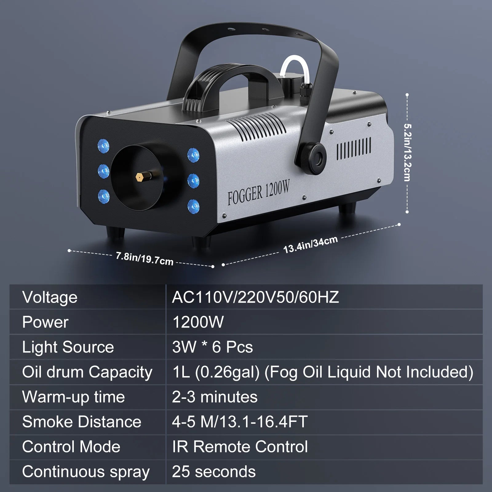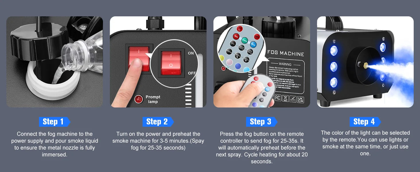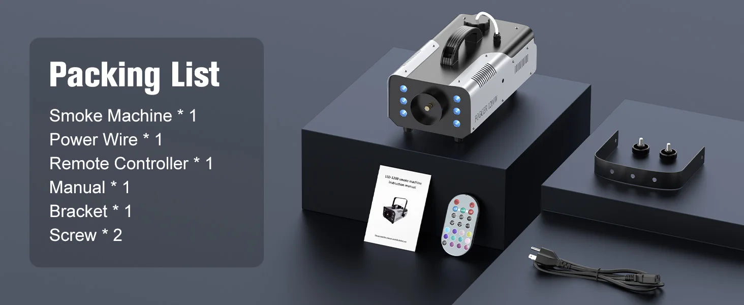 Enhance your performances and events with our Light 1200W Fog Machine. Its RGB LEDs lighting add a colorful touch to any atmosphere, while its 1200W power creates a professional stage feel. Perfect for plays, home entertainment, and Halloween parties. Illuminate your space with 100% fog coverage for an immersive experience.
