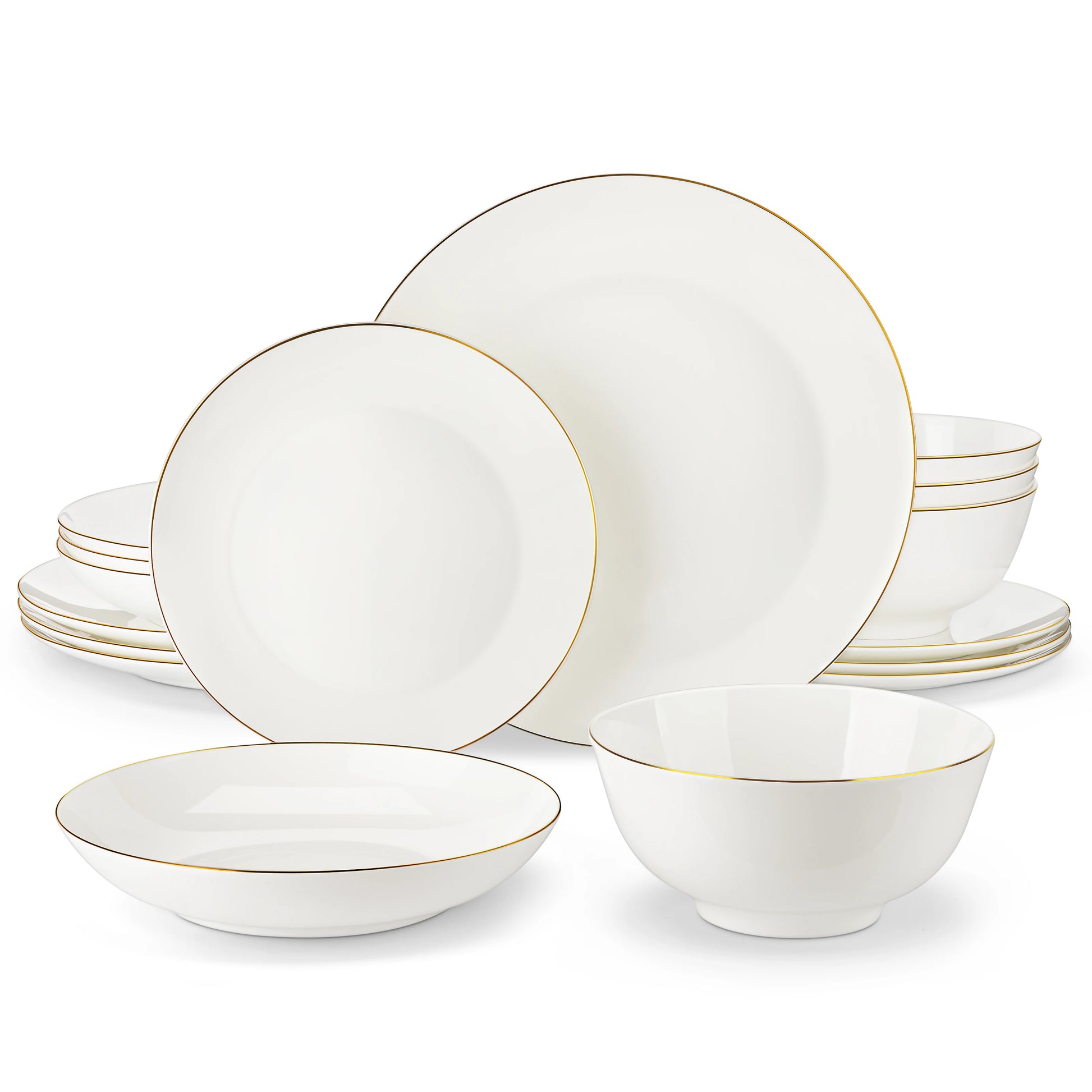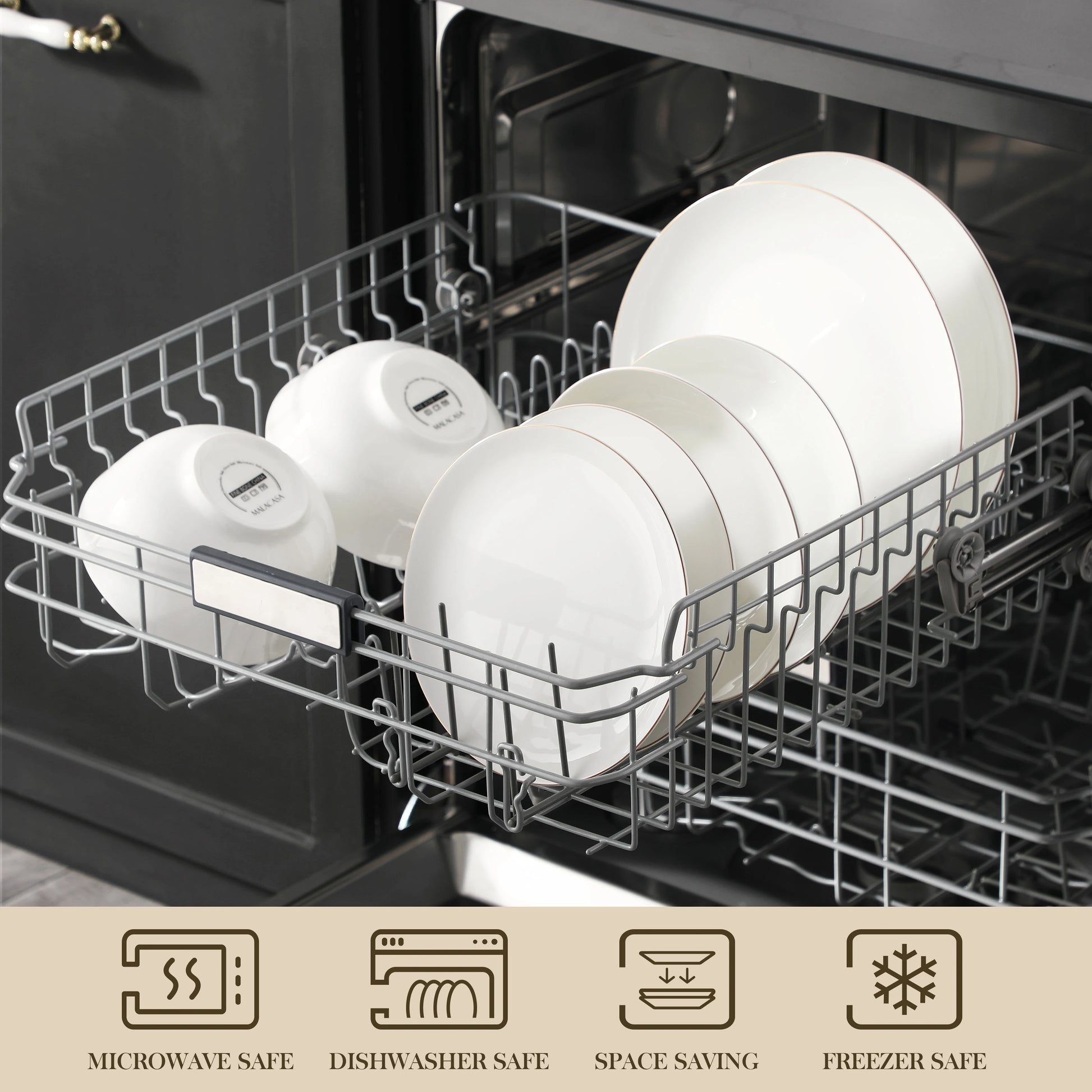 MALACASA NORI 16/32-PIECE Nordic European White Bone China Tableware Set with Bowl,Dinner&Dessert&Soup Plate Set for 4/8 person
