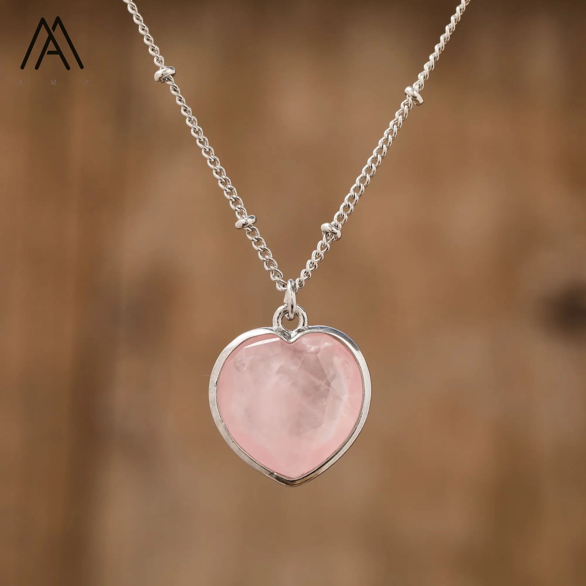 Natural Roses Quartz Heart Pendant Necklace For Women Elegant Romatic Gems Stone Necklace Jewelry Gifts Dropship