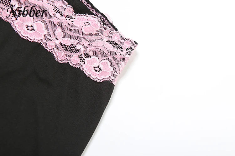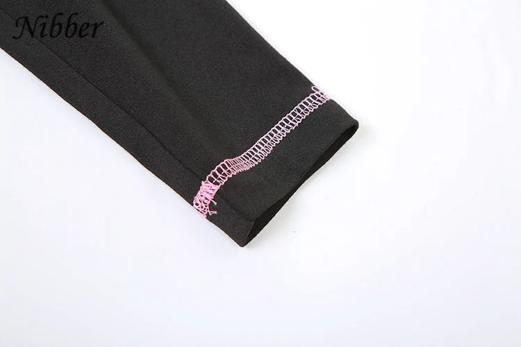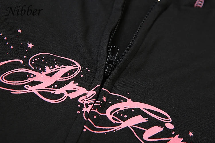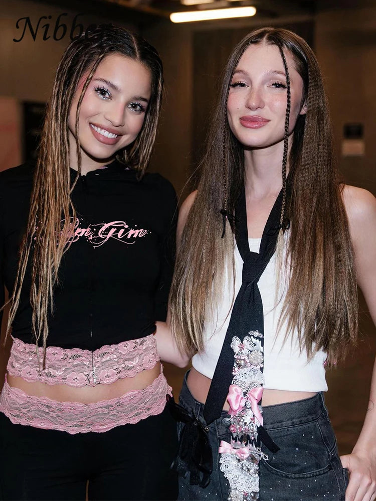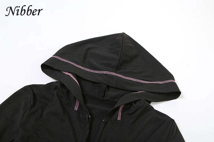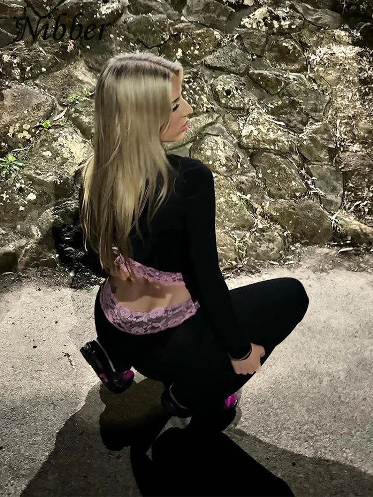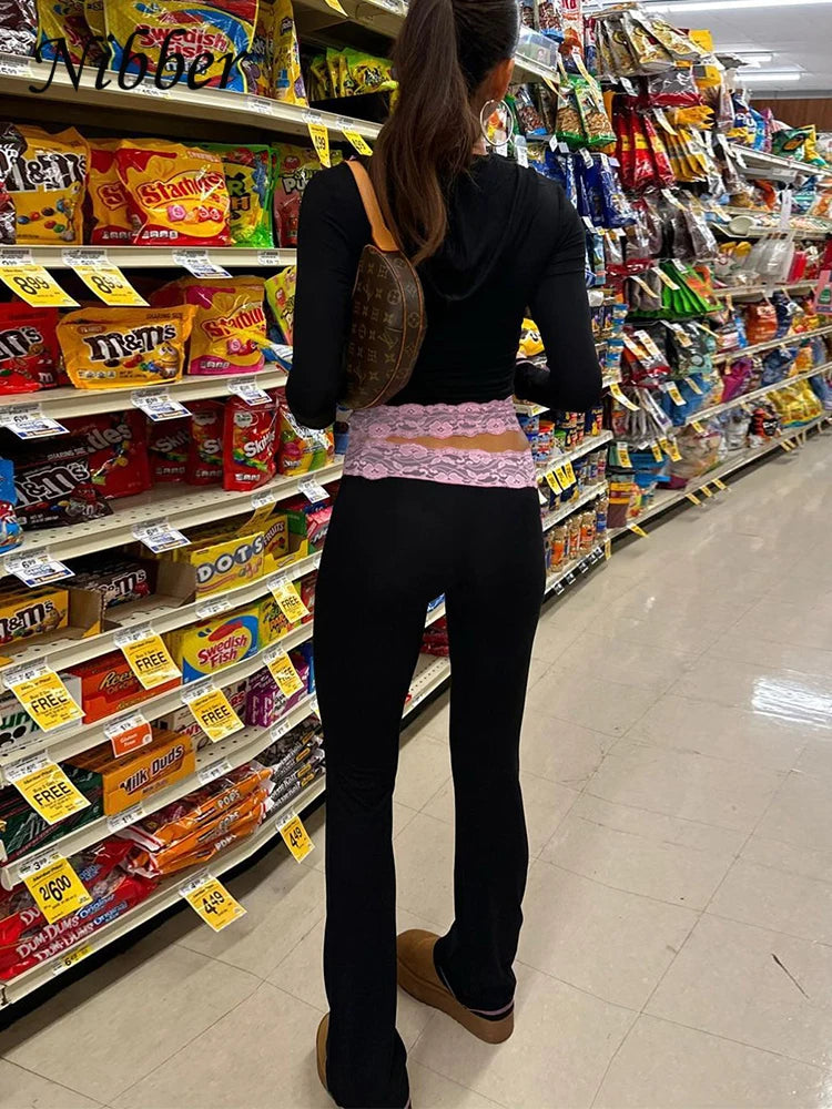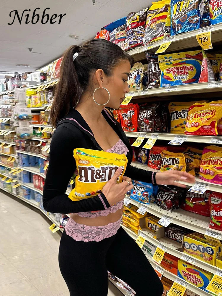 Nibber Lace Patchwork Woman 2 Piece Set Hooded Zip Crop Jacket+Patchwork Flare Pants Matching Streetwear Casual Matching Outfits