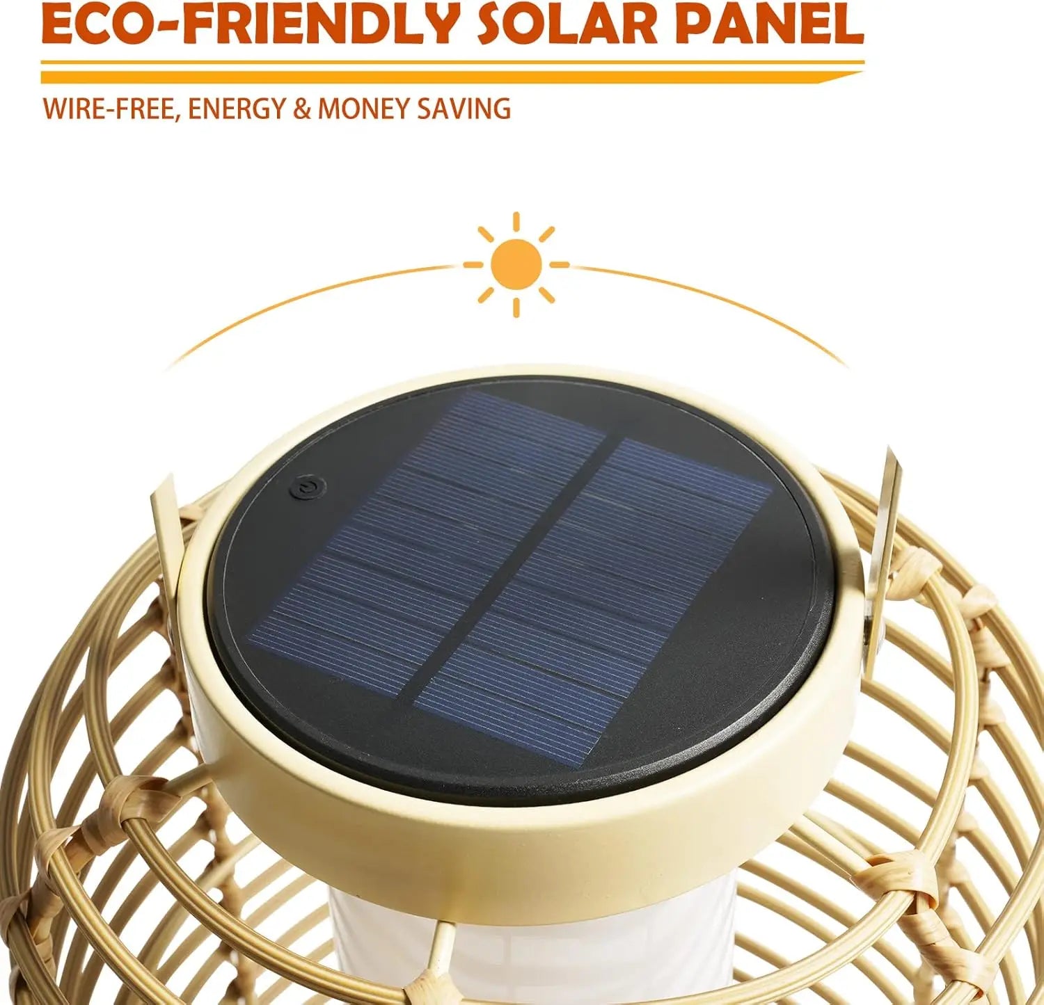 Outdoor Solar Powered Floor Lamp Set of 2, 14-inch Wicker Woven LED Lamp, Water-Resistant Garden Light, Boho Style
