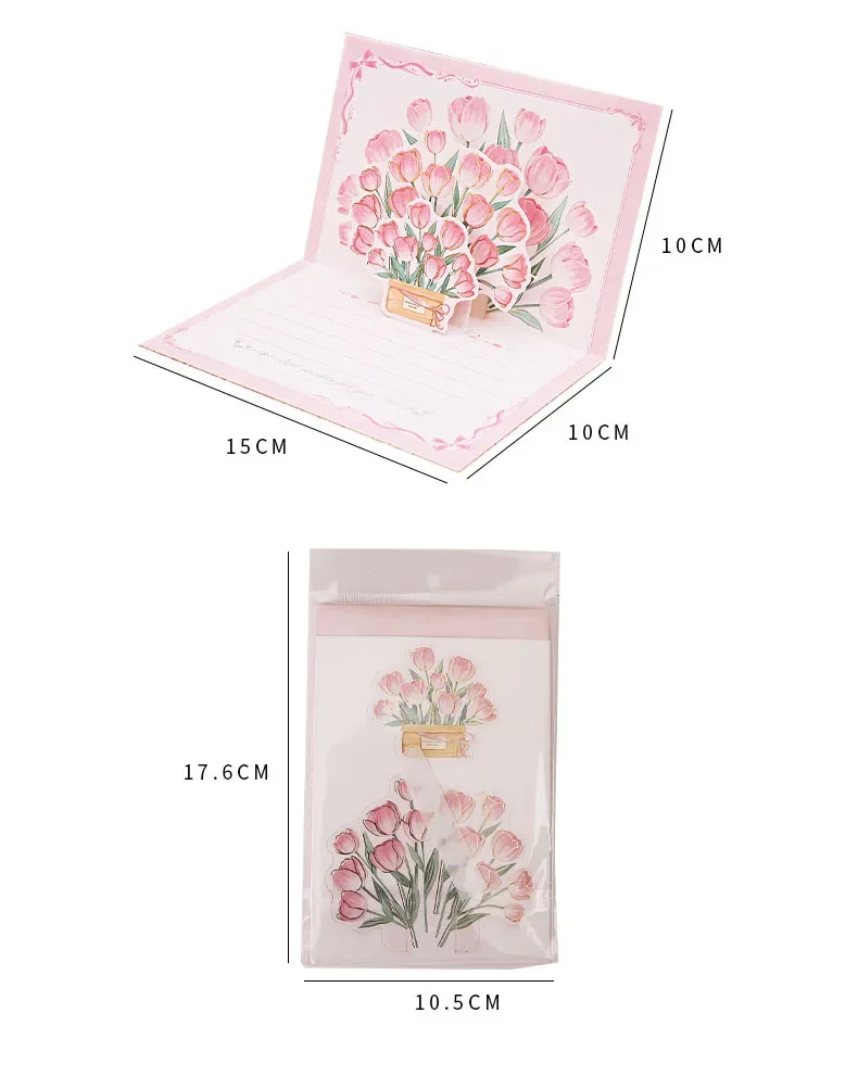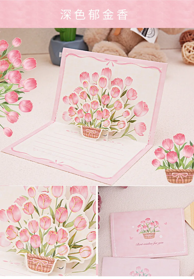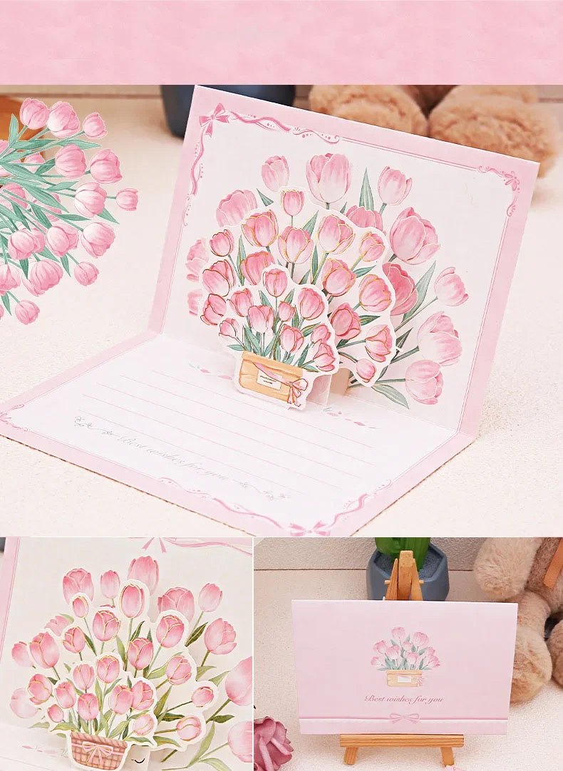 Pop up 3D bouquet greeting card postcard Father's Valentine's March 8t Mother's Day blessings National Day creative cards gift