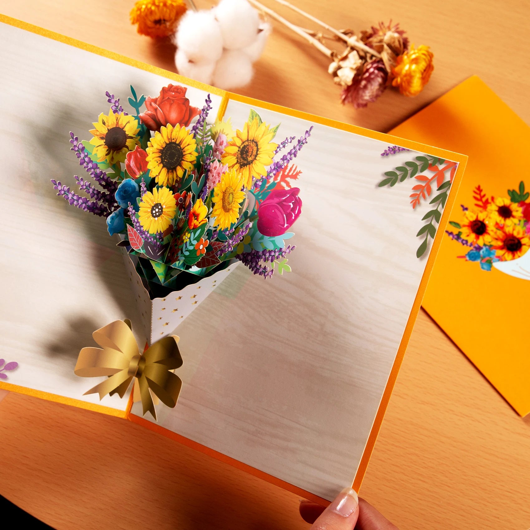 Pop-Up Flower Card Flora 3D Greeting Card for Birthday Mothers Father's Day Graduation Wedding Anniversary Get Well Sympathy