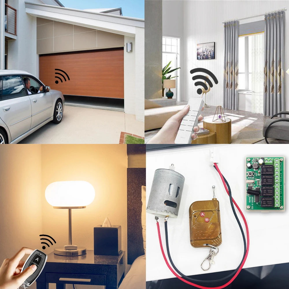 QIACHIP 4CH 433.92MHz Relay Module – DC 5V/12V/24V/48V 10A Wireless Remote Control Switch for EV1527, DC Motor DIY