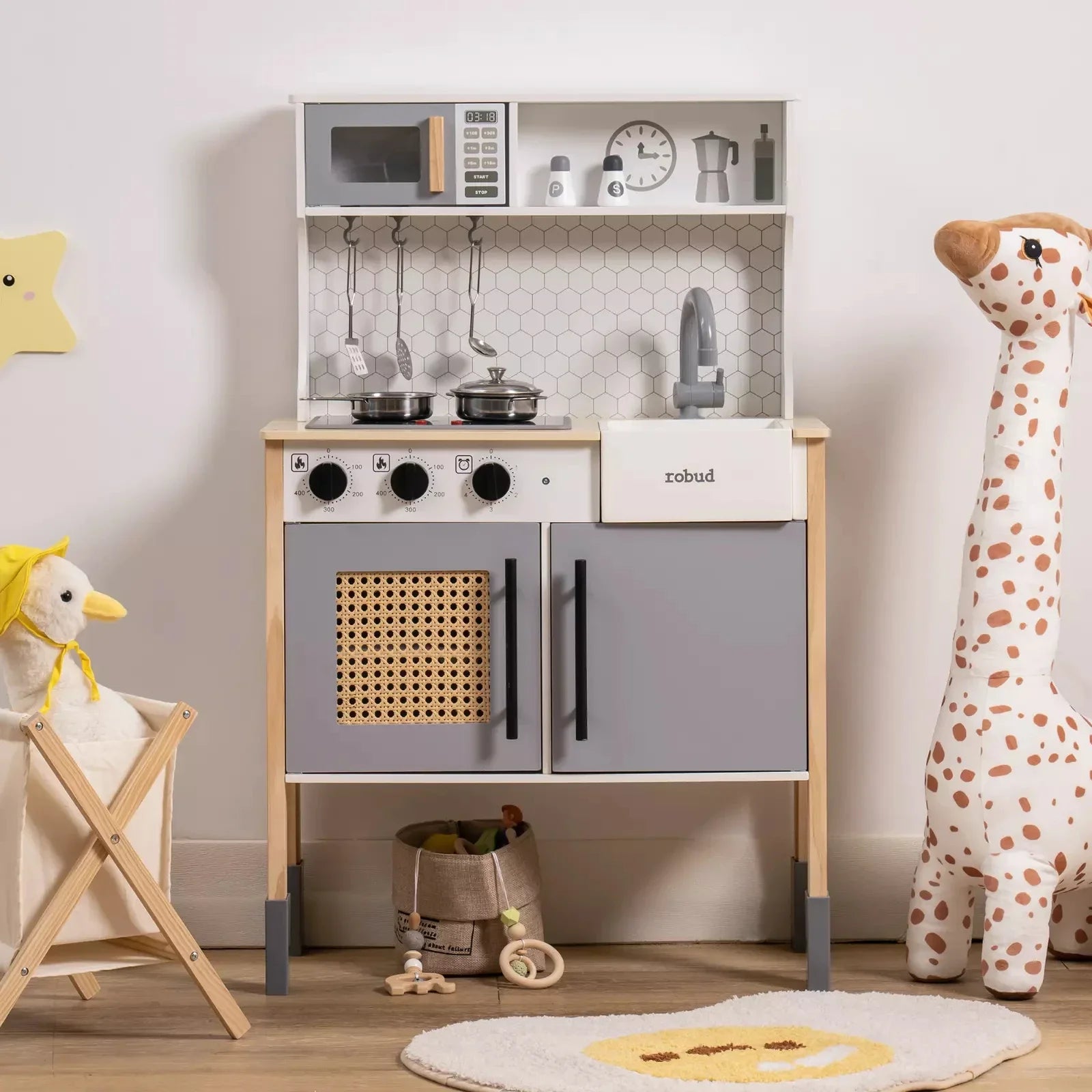 ROBOTIME DIY Pretend Play Kitchen Cooking Toy Set Gift For Boys And Girls Gray